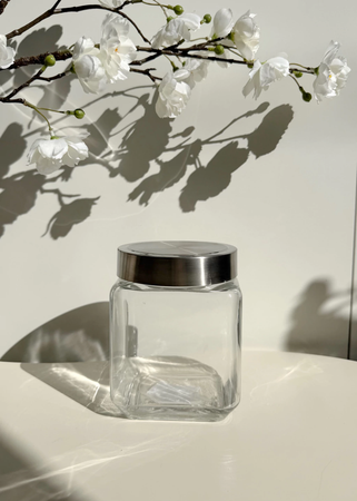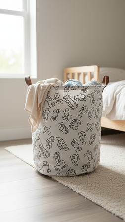 Canasto de tela impermeable color natural con impresion STUFF de un solo ladoo
