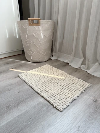 Alfombra de yute y algodón blanco con flecos en las puntas