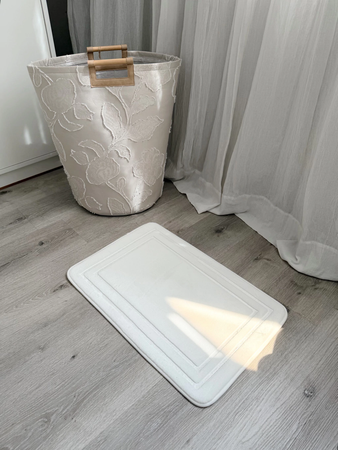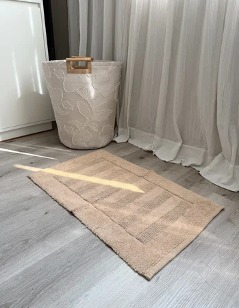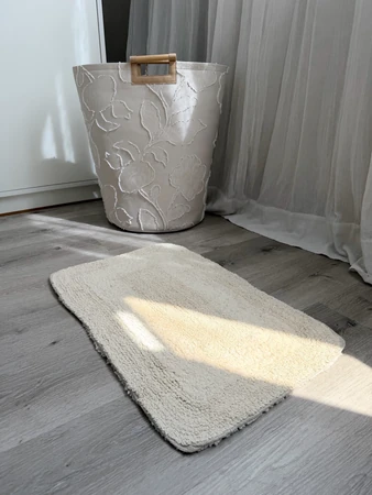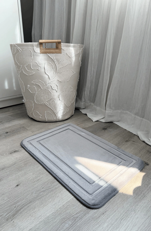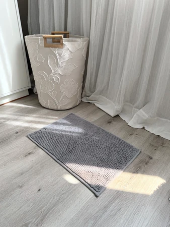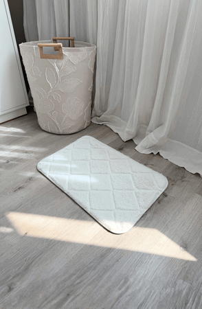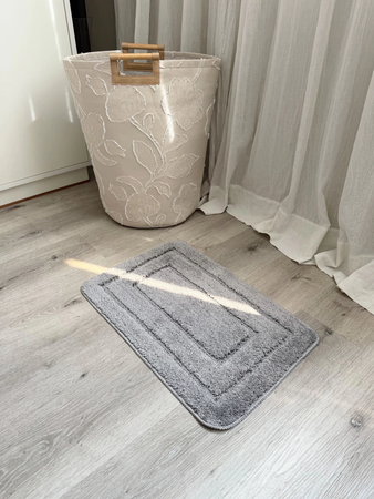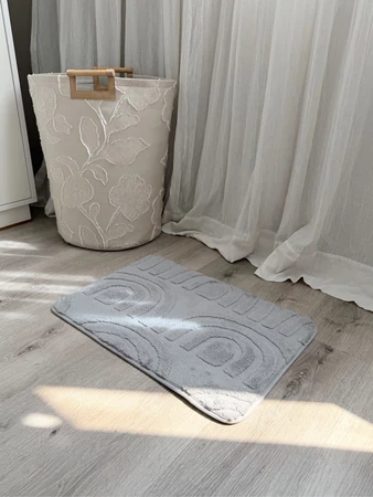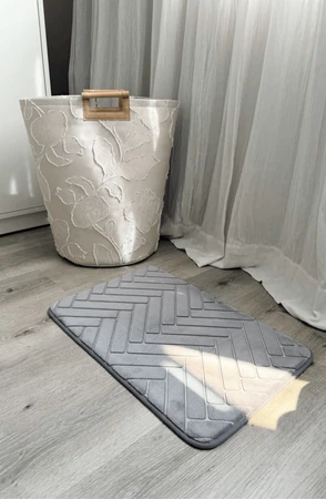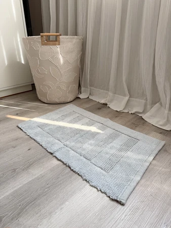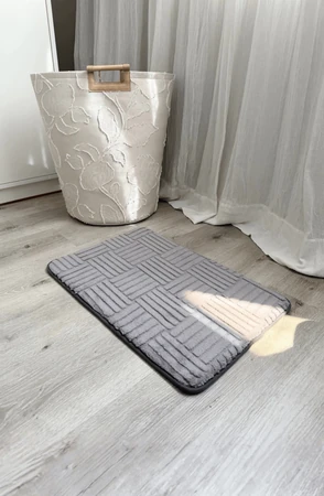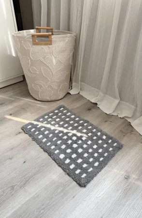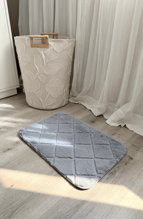 Alfombra de algodón gris con tramado de rombos con pelo corto