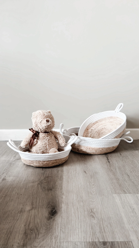 Set x3 canastos de tela con fibra natural chatos