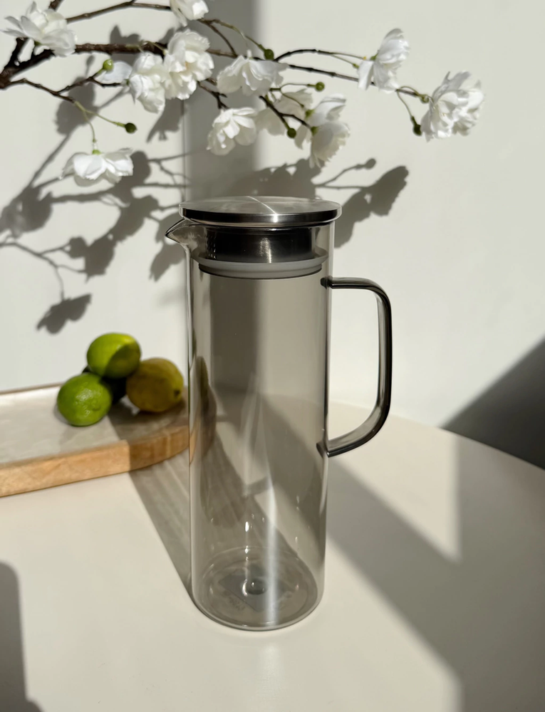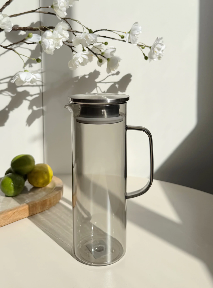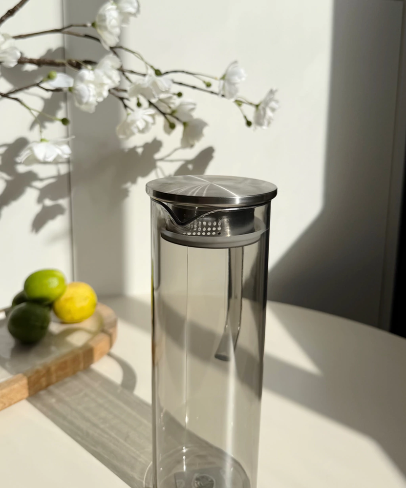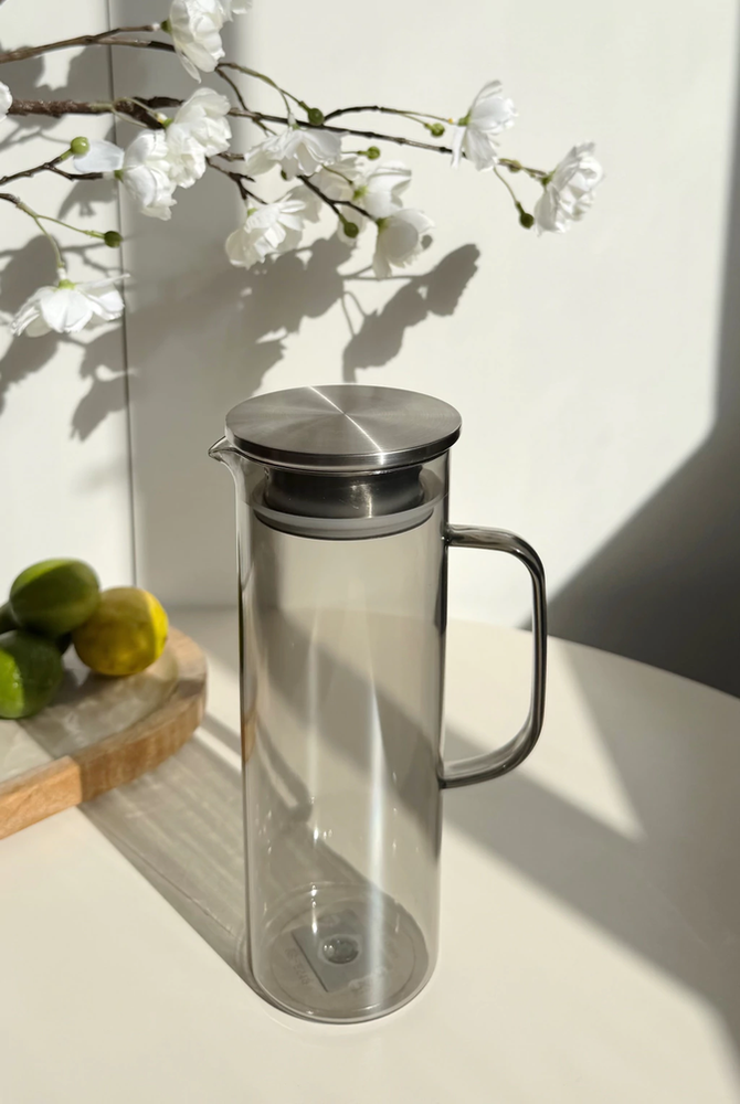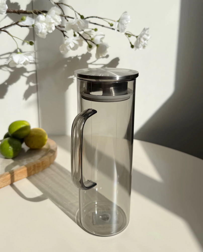 Jarra de acrílico lisa cilindrica con tapa de acero 1,1 lt