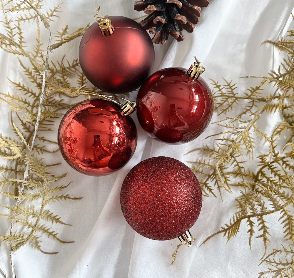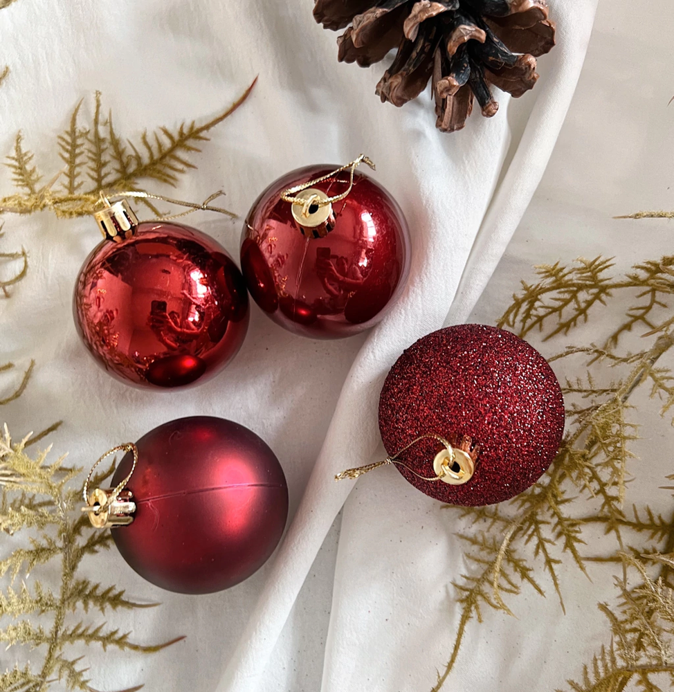 Set x24 bolas brillantes mate surtidos bordó - Ver medidas disponibles