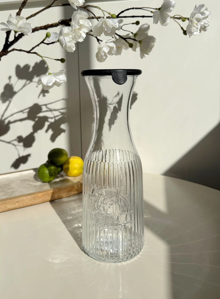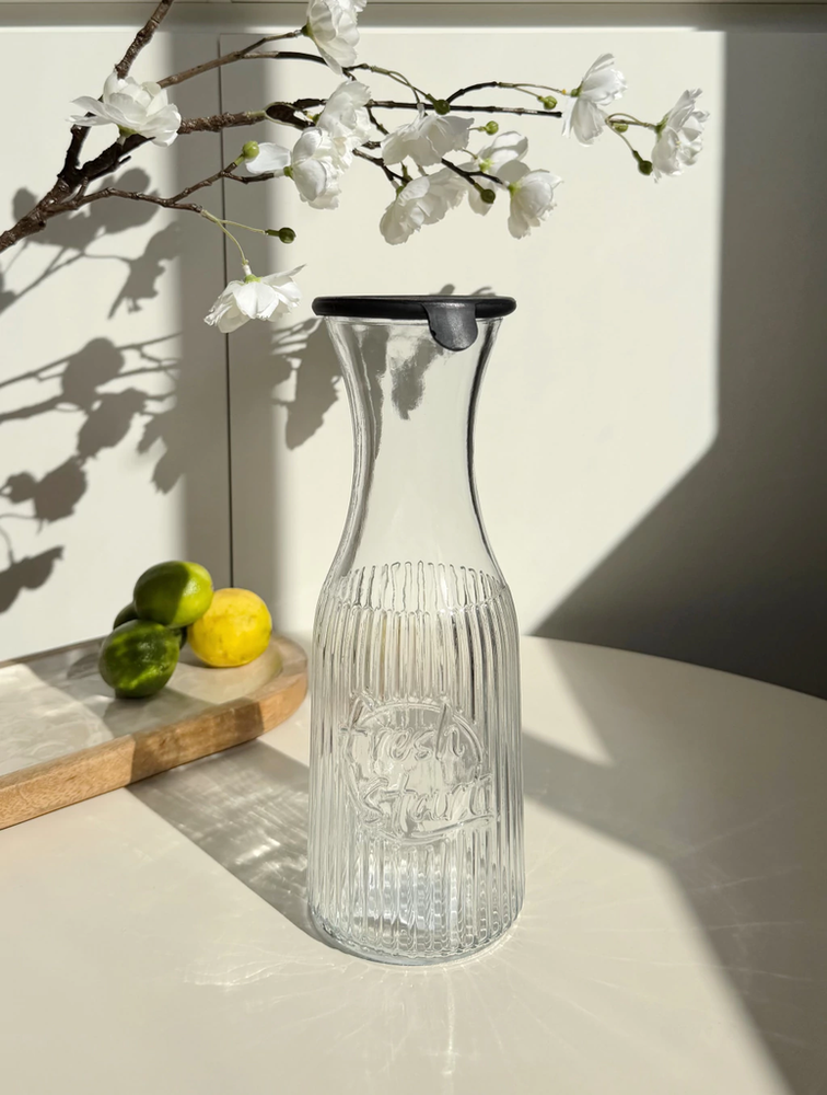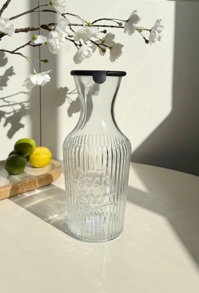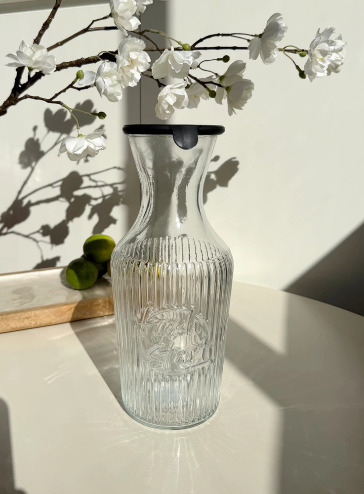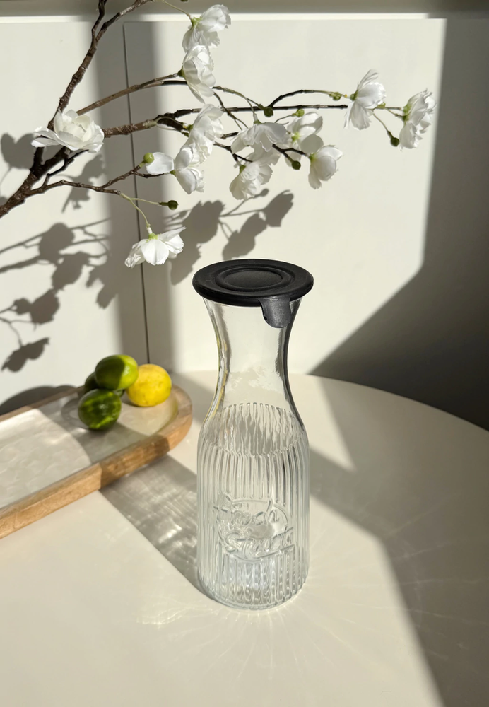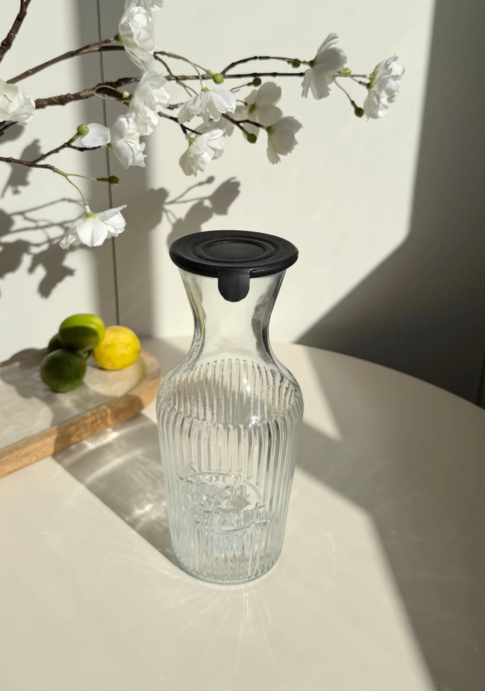 Botella de vidrio decantador con tapa de silicona negra