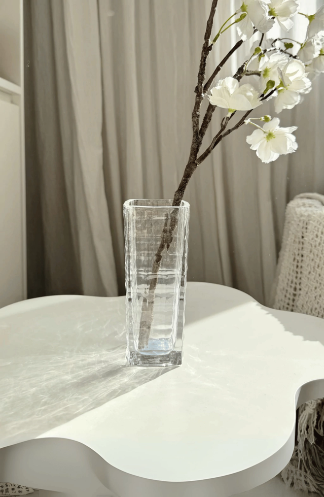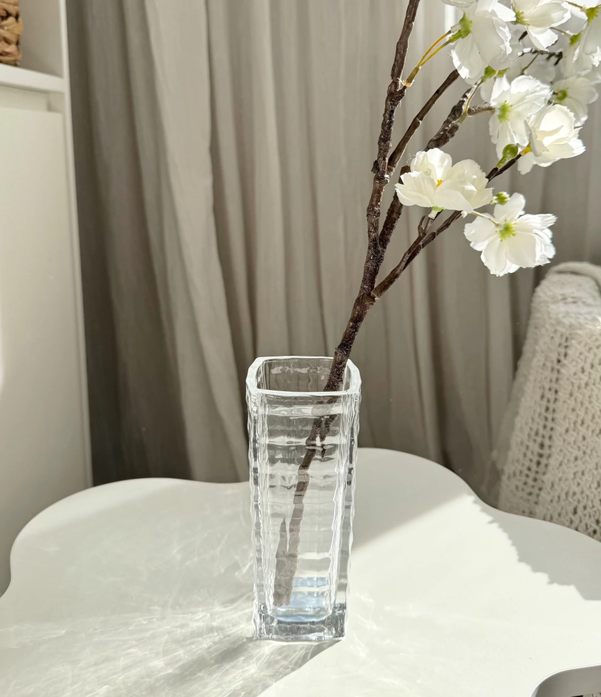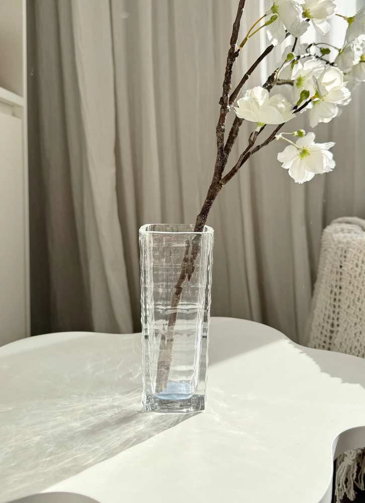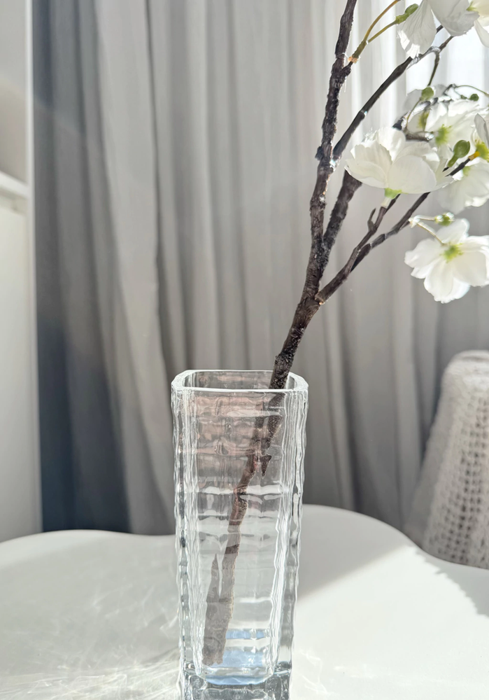 Florero vidr cuadros 6,5x15cm base 5cm