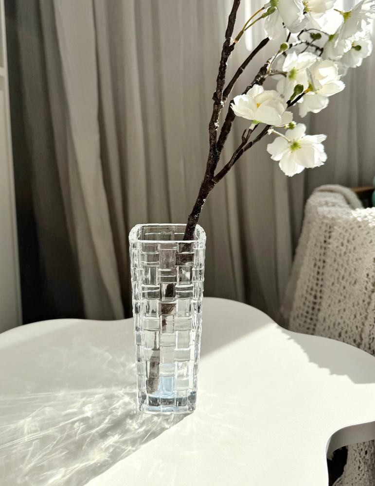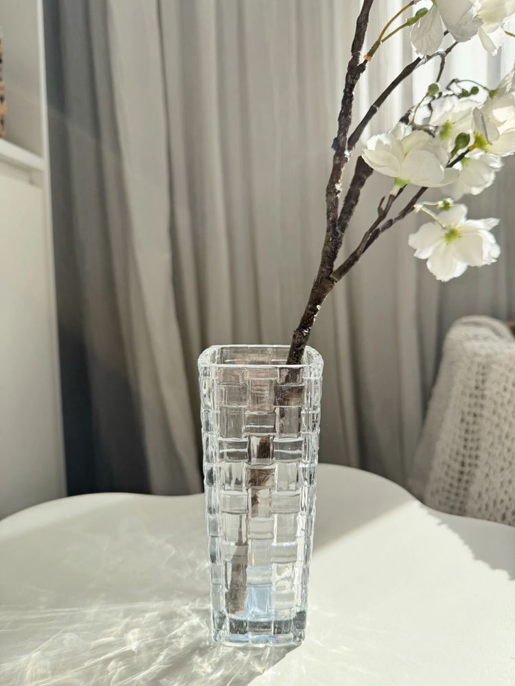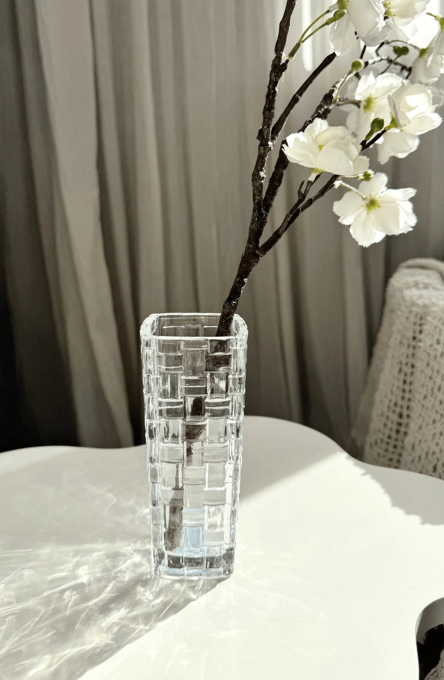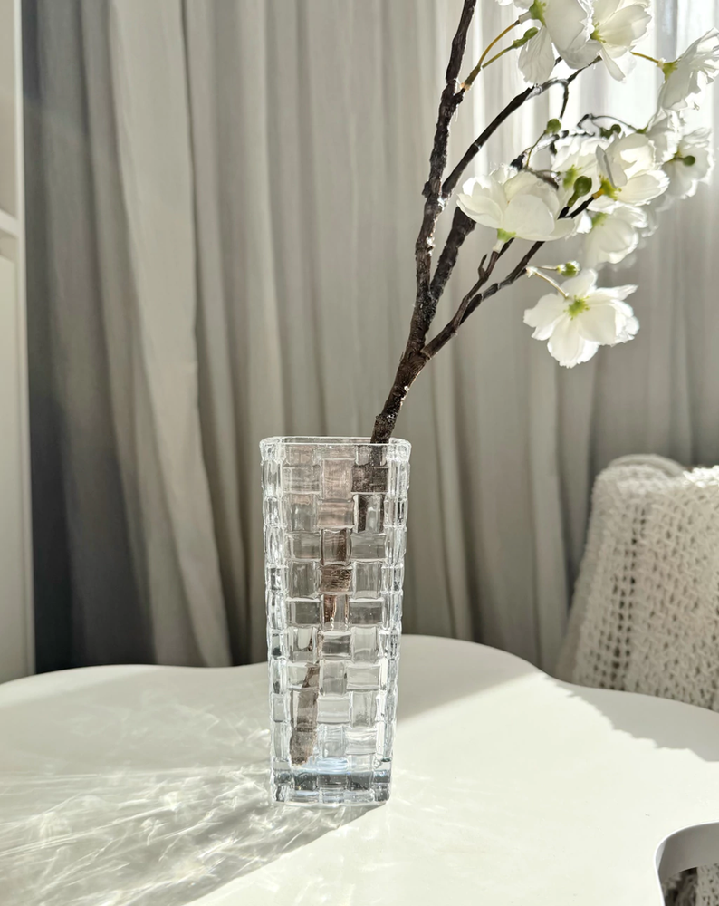 Florero vidr tram trenz 6,5x15cm base 5cm