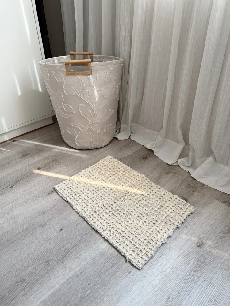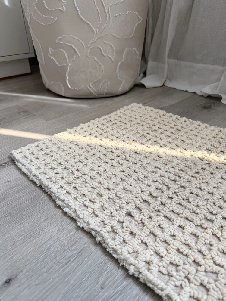 Alfombra Natural decorativa de algodon con cuadros chicos hecho con pequeños nudos