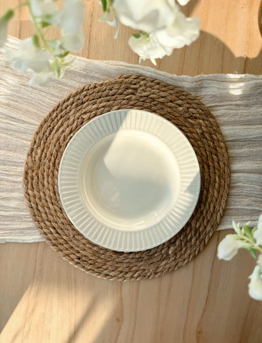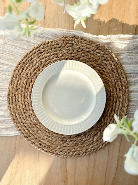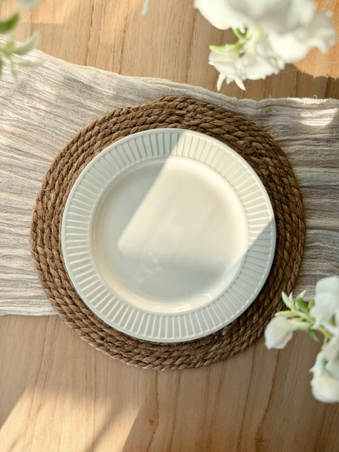 Plato Blanco Brillante con lineas en el borde y liso en el centro