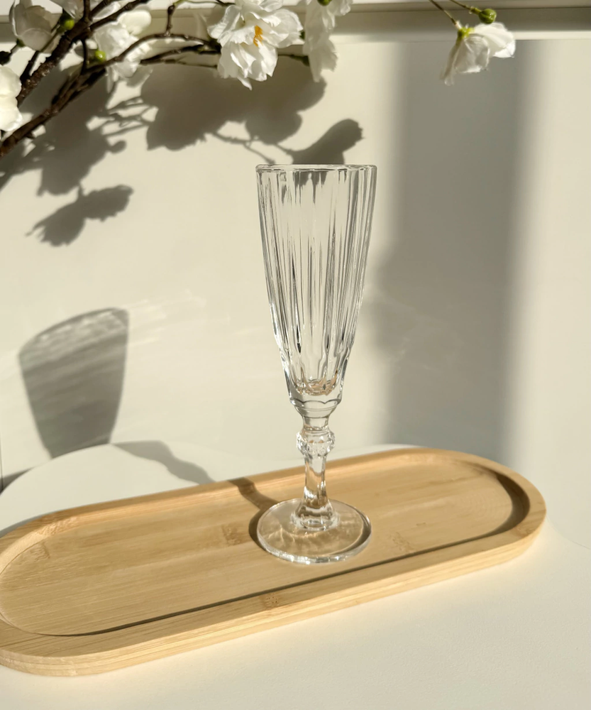 Set x6 copas de champgane de vidrio labradas con rayas tipo vintage