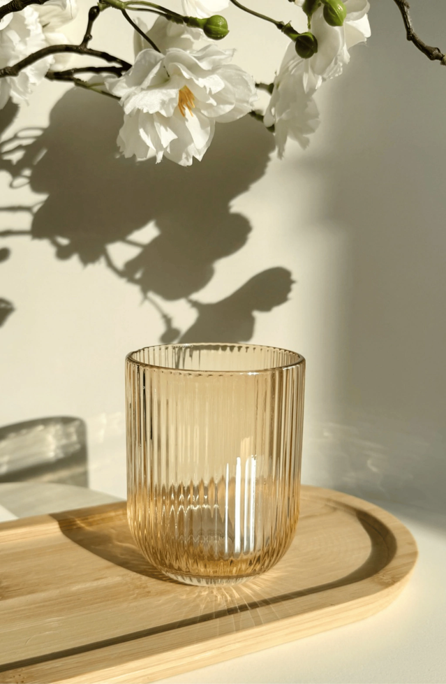 Set x 6 Vasos de vidrios redondos con lineas Dorado