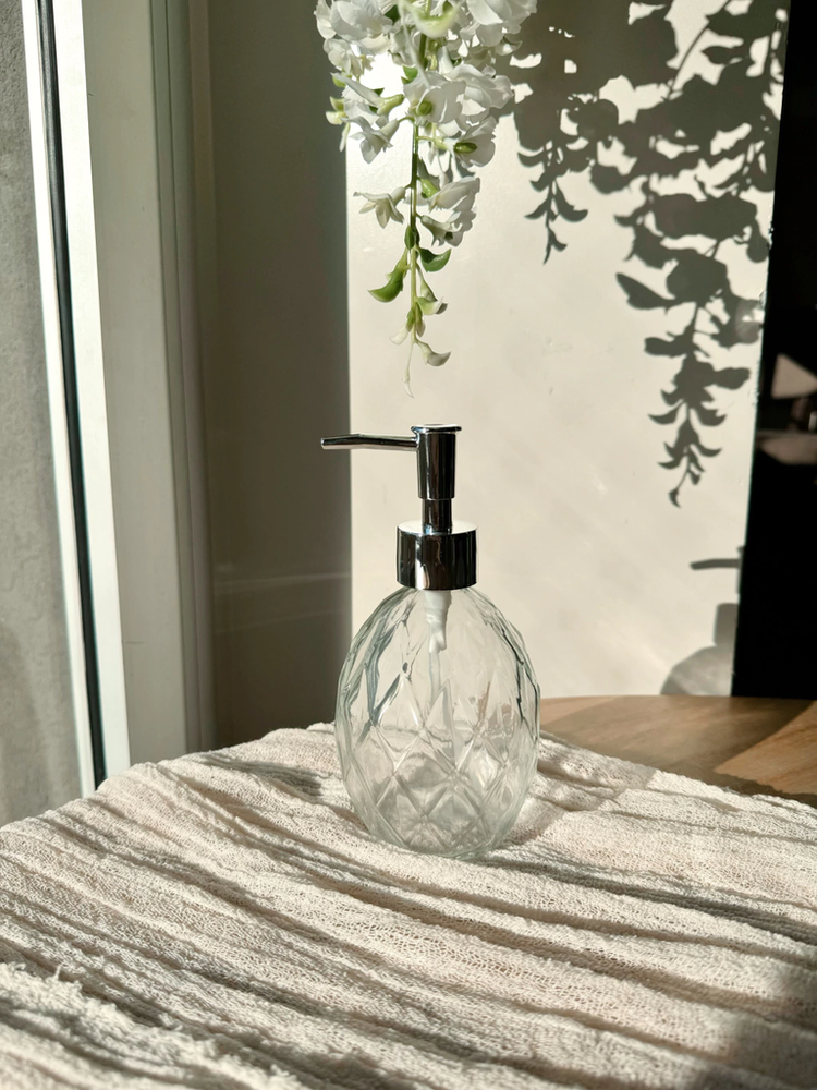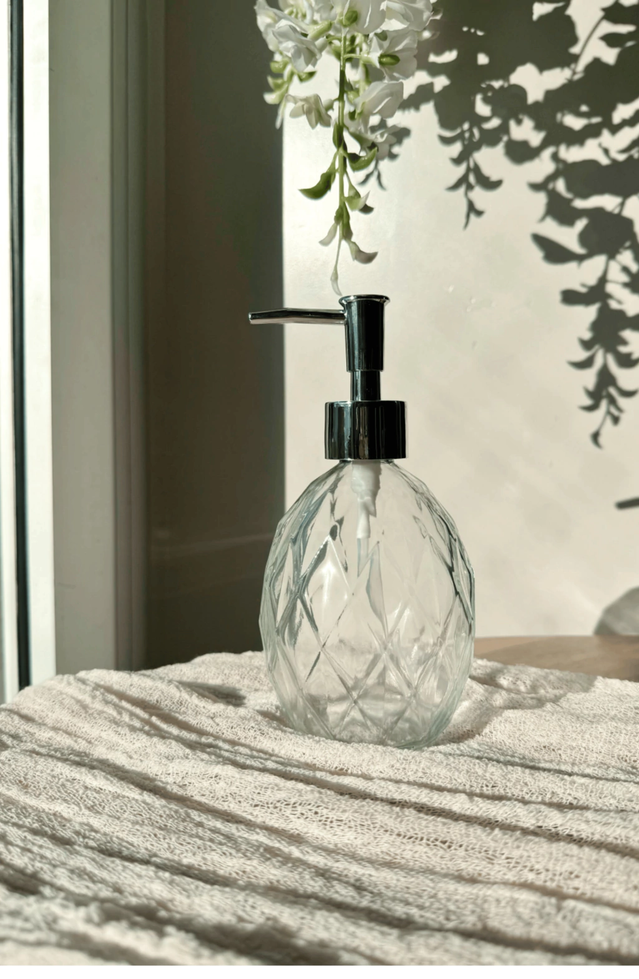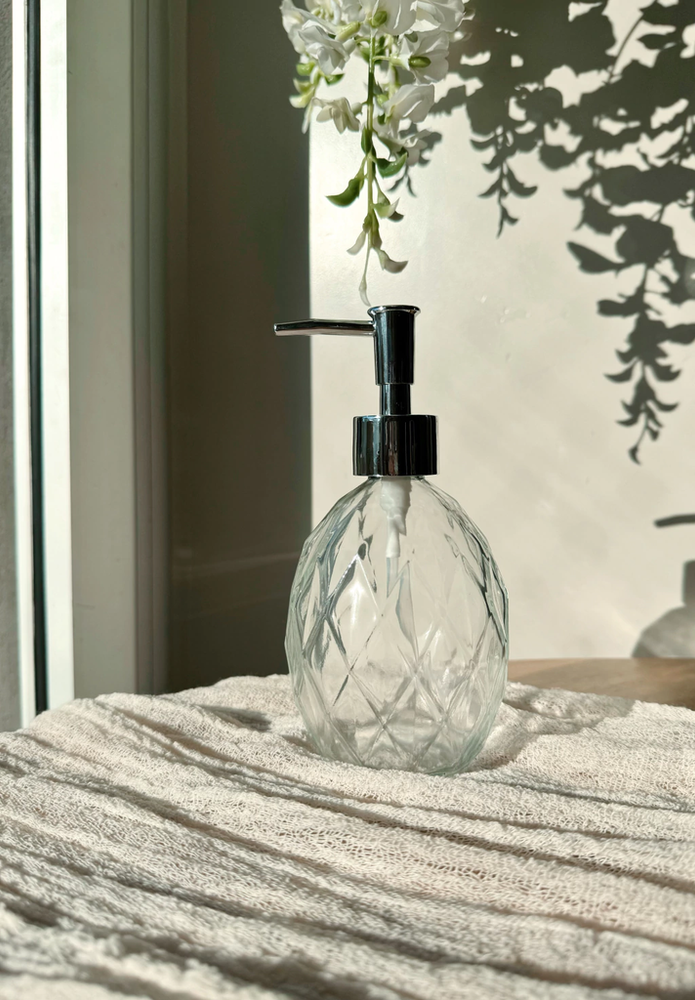 Dispenser de jabón liquido oval con rombos grandes de vidrio, capacidad 350ml