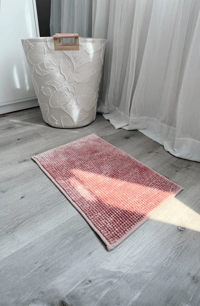 Alfombra Premium de chenille con puntos pelo corto rosa con atideslizante