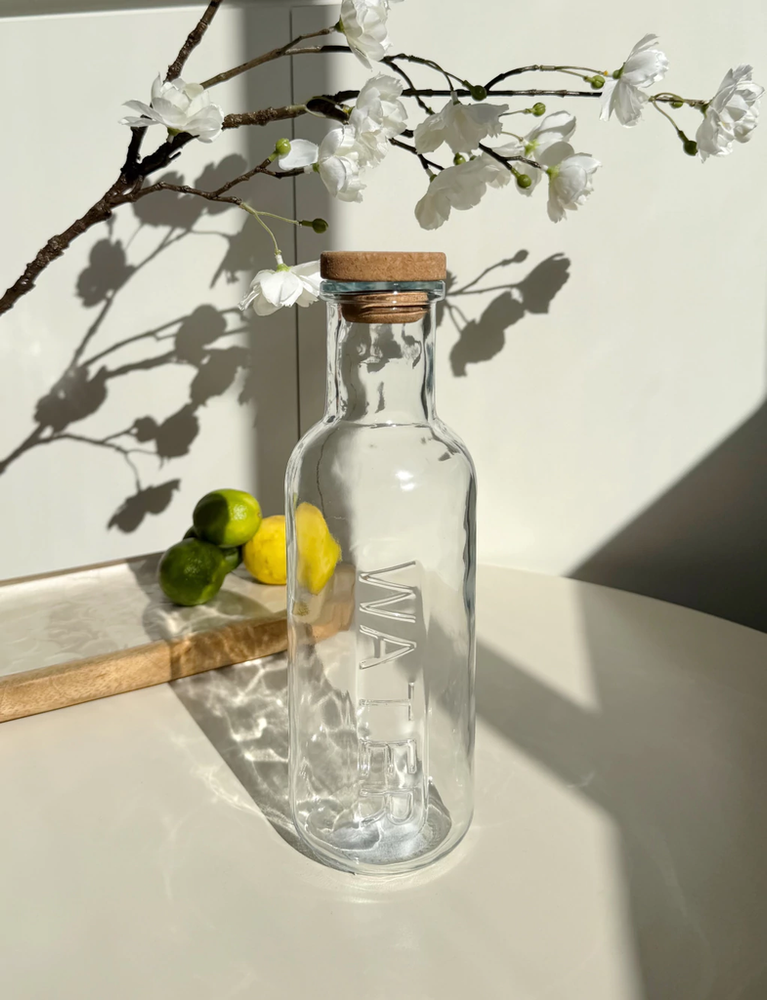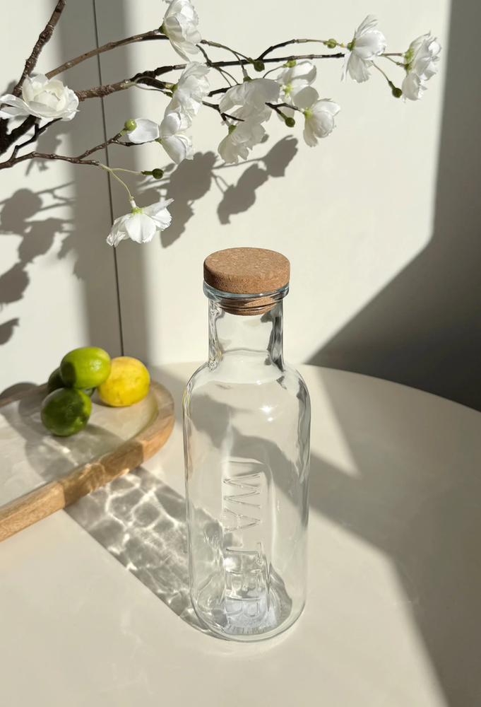 Botella "water" con tapón corcho vidrio
