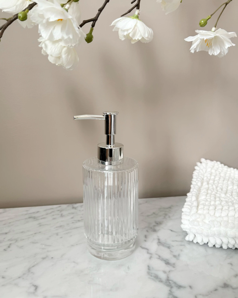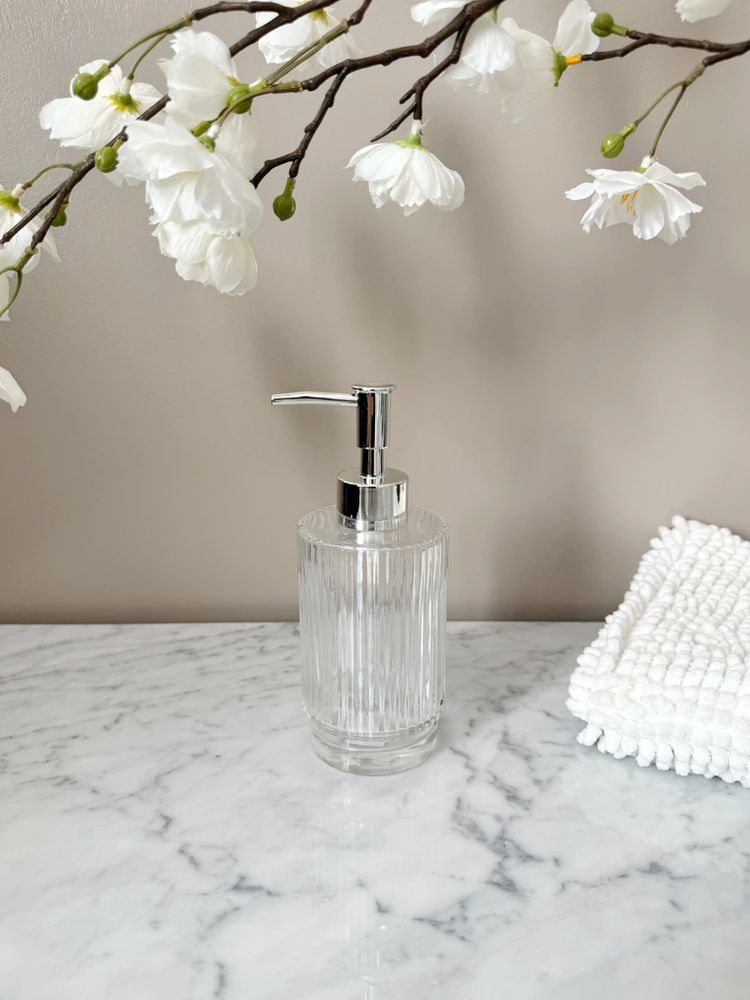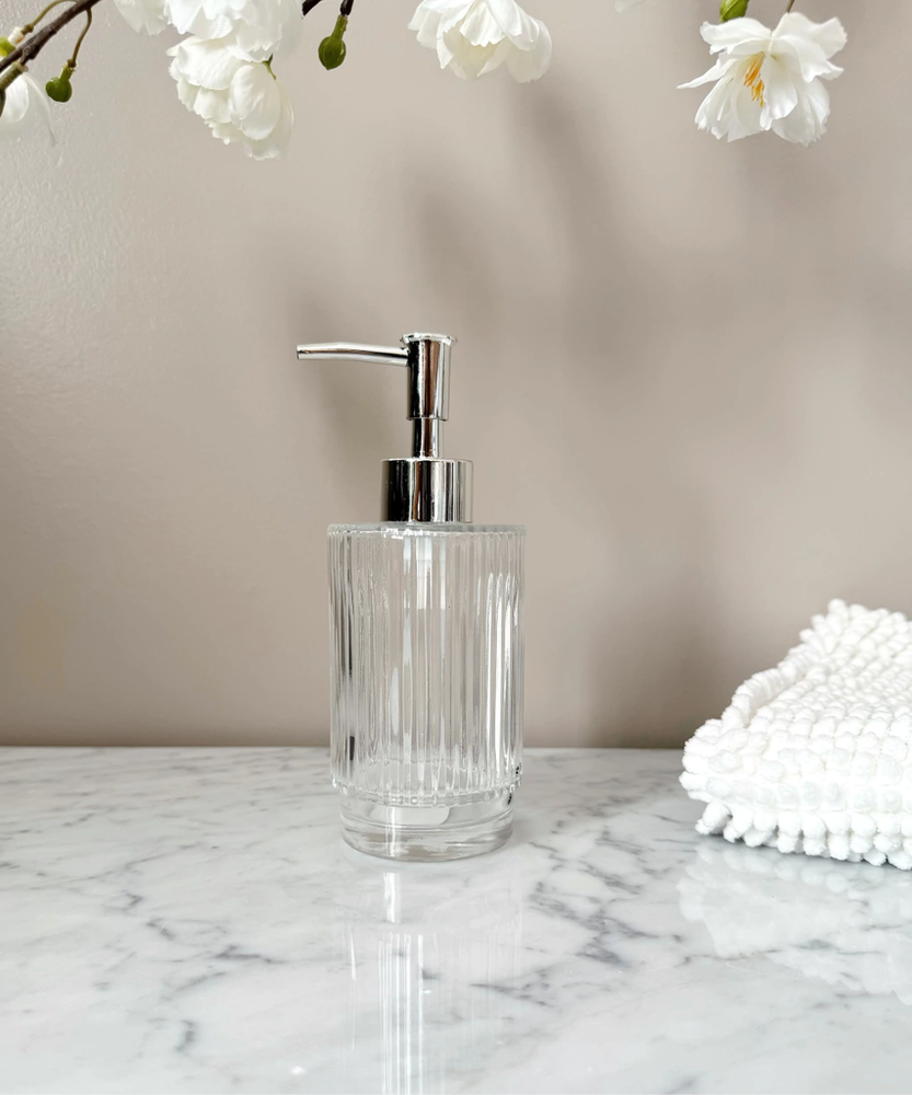 Dispenser para jabón líquido redondo rayado con base lisa de vidrio