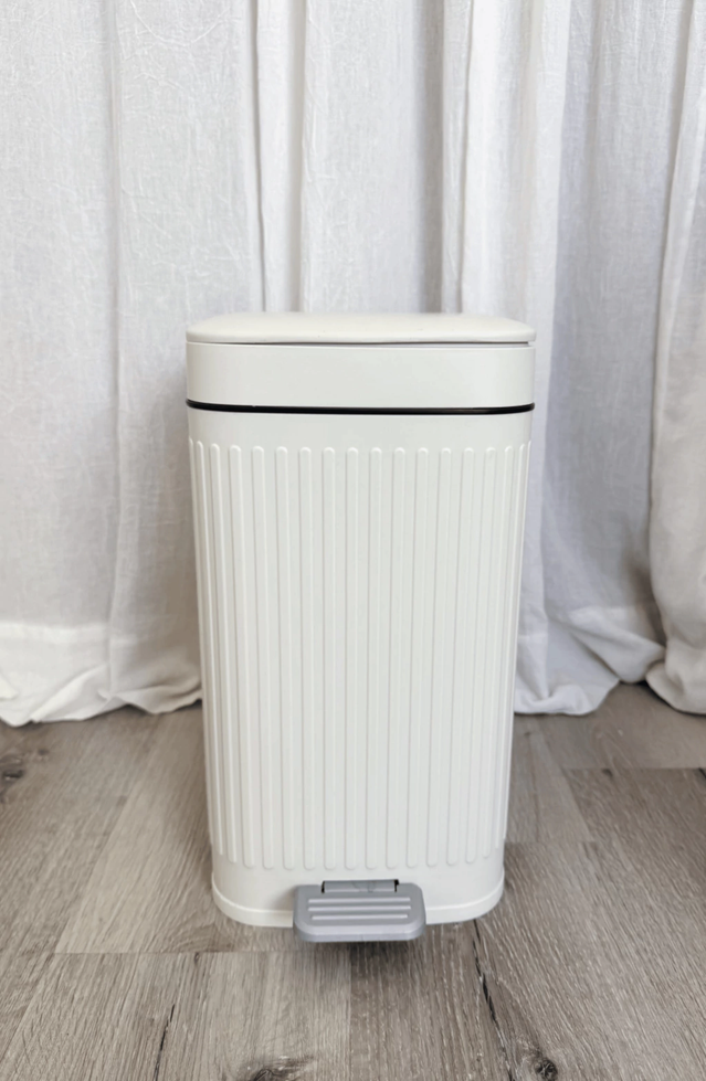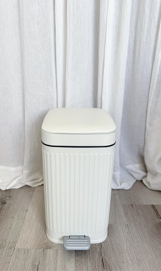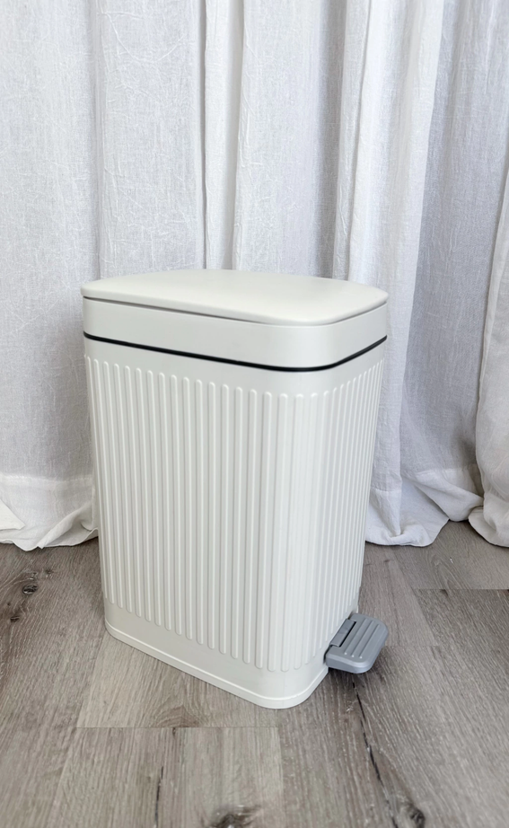 Cesto de basura rayado rectangular con pedal blanco plástico