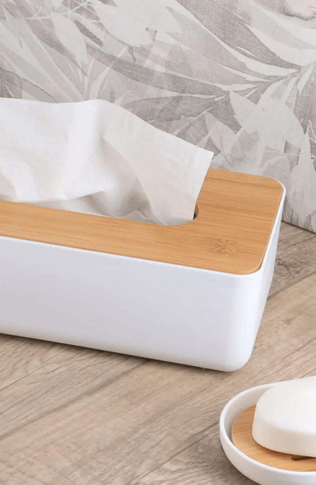 Porta pañuelos con tapa bamboo plástico