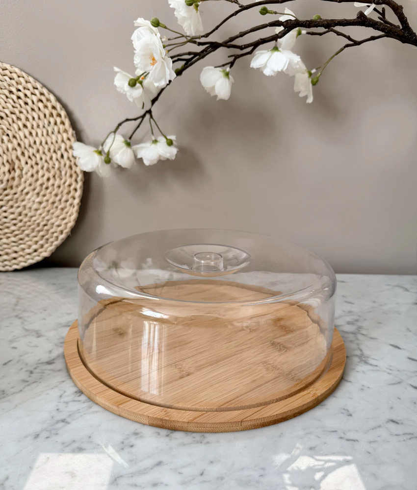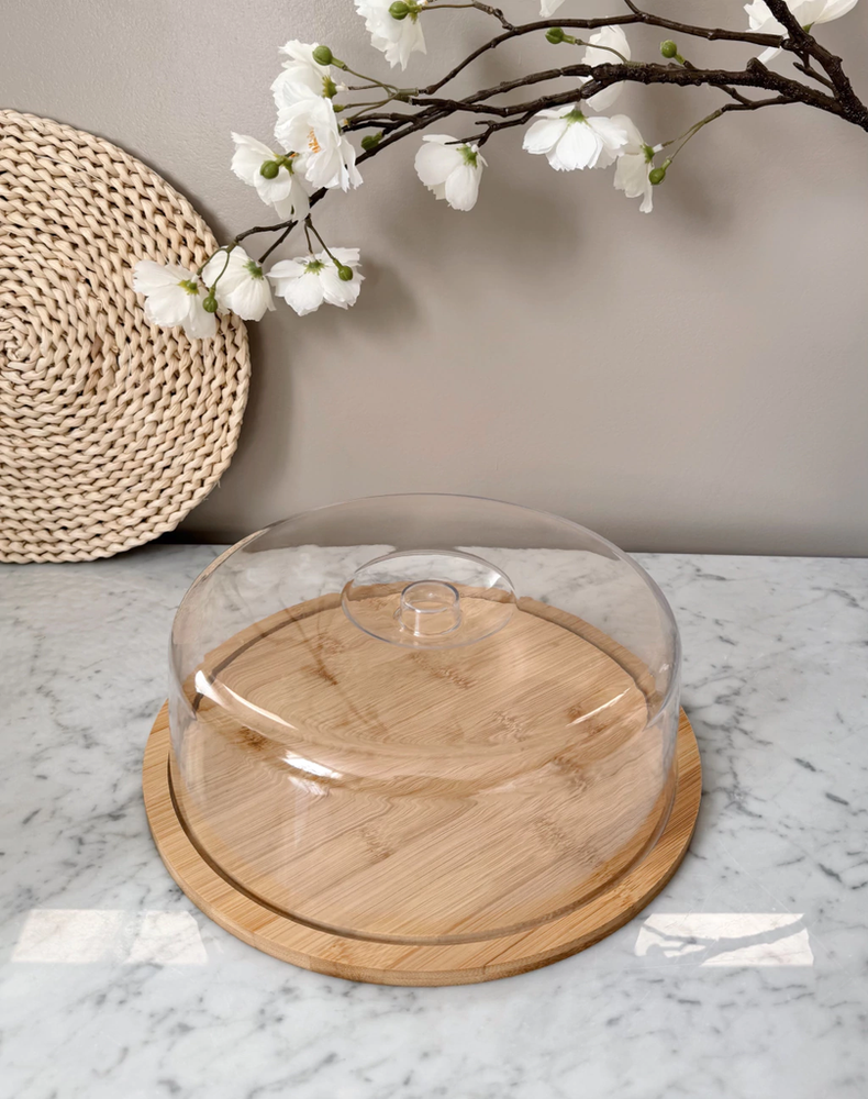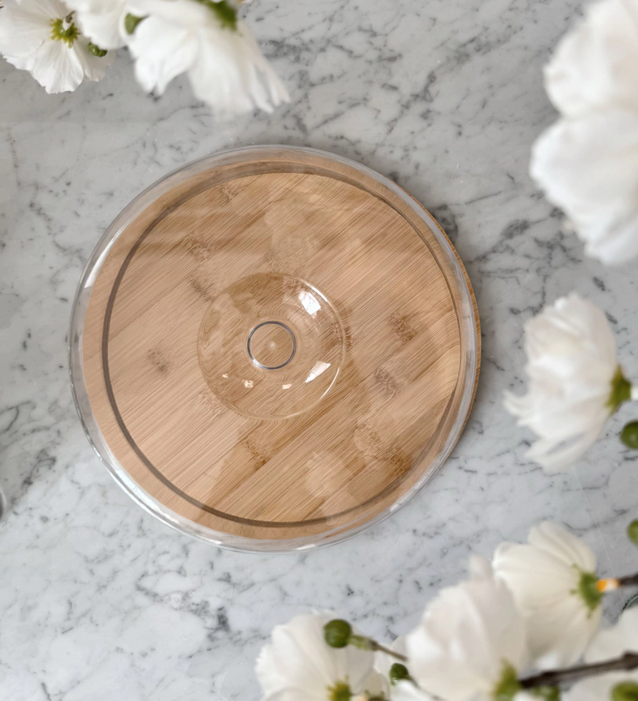 Bandeja redonda con tapa bamboo y acrílico