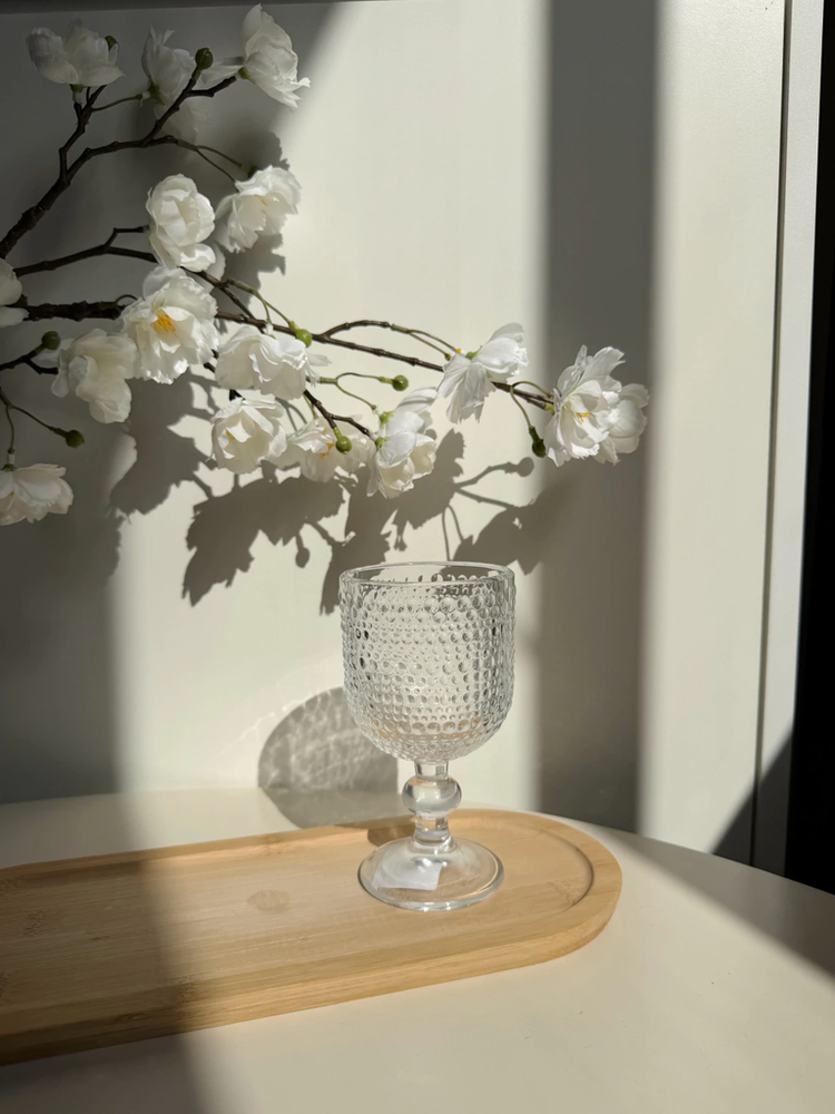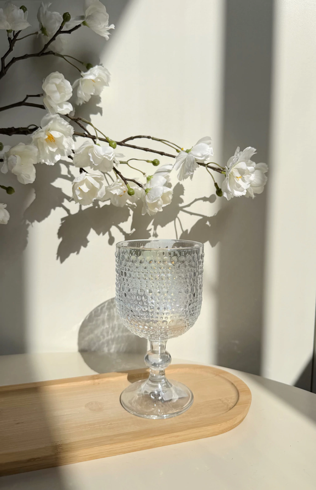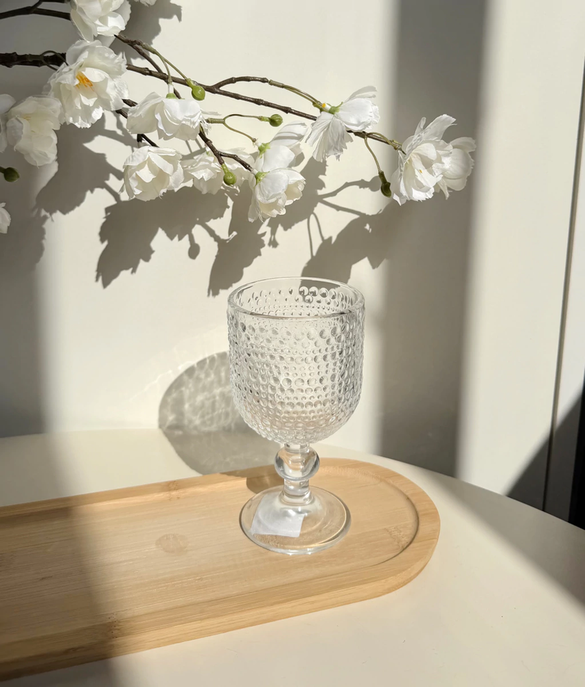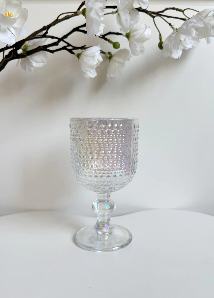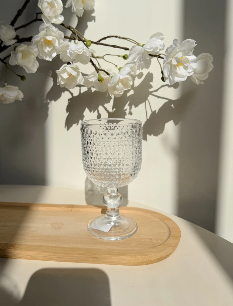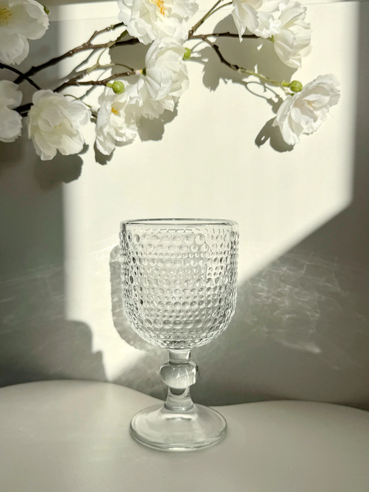 Set x6 copas chicas de vidrio transparente con puntos 8x14,5cm