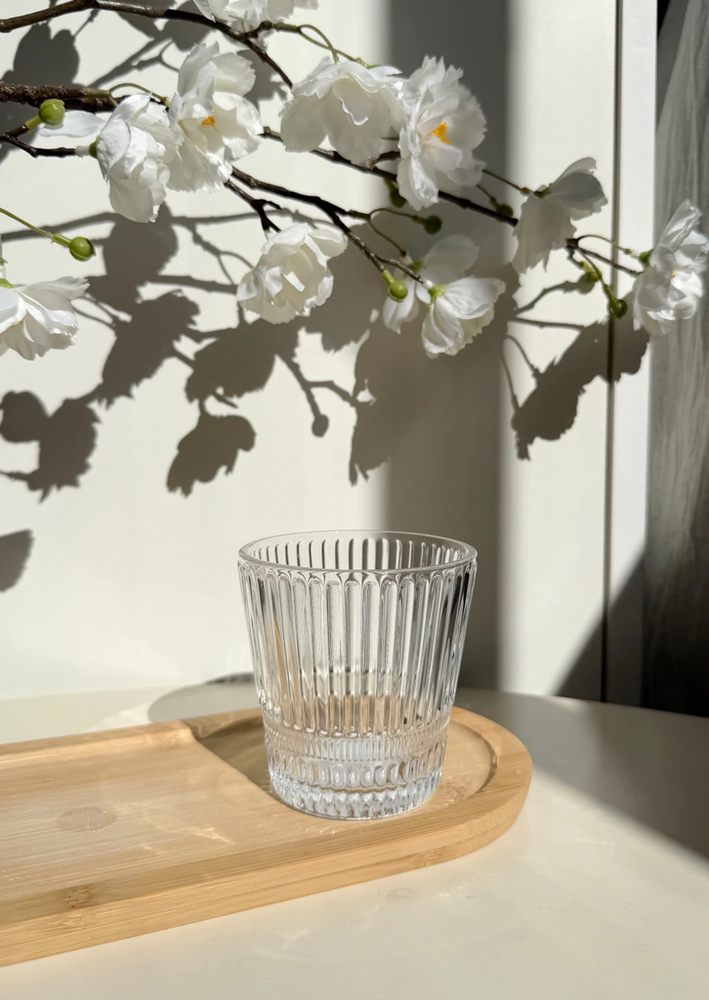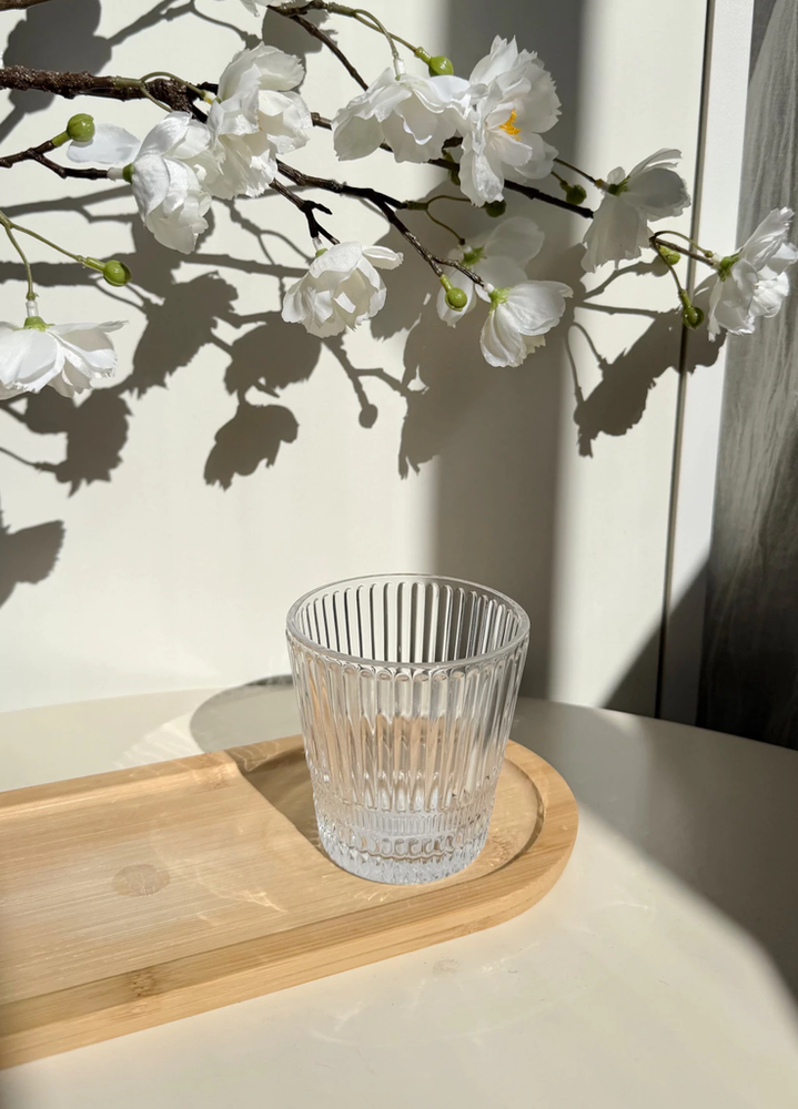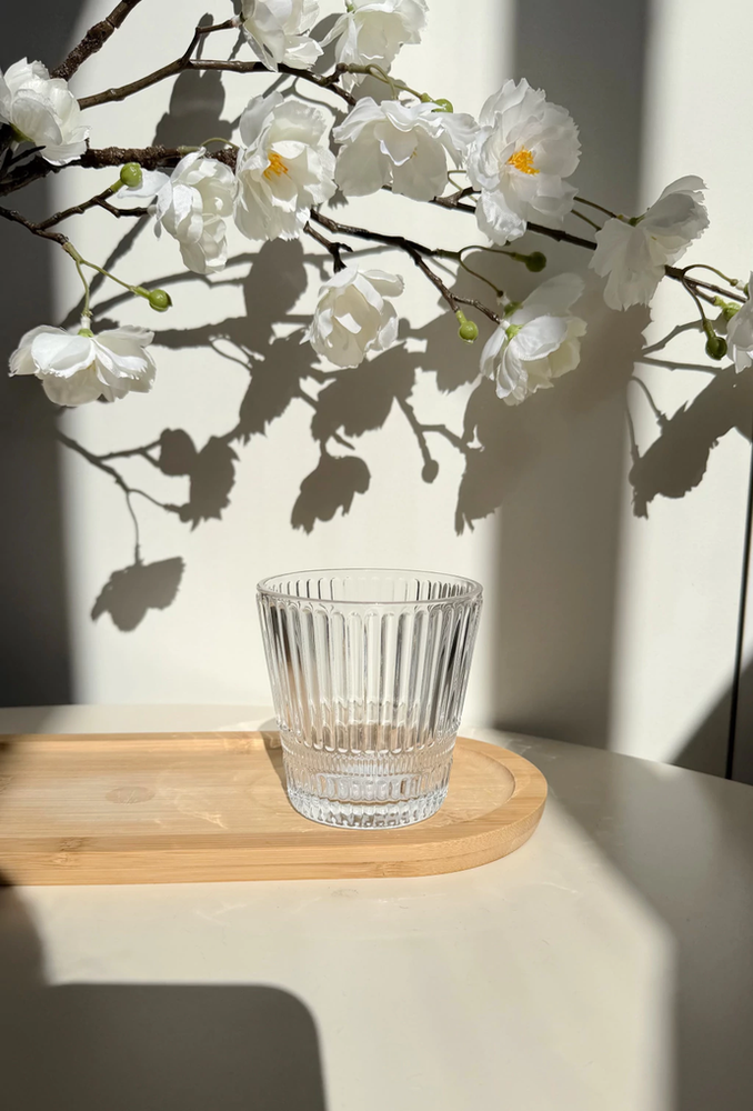 Set x6 vasos cónicos de vidrio rayado con guarda rayada fina 8,5x8,5cm