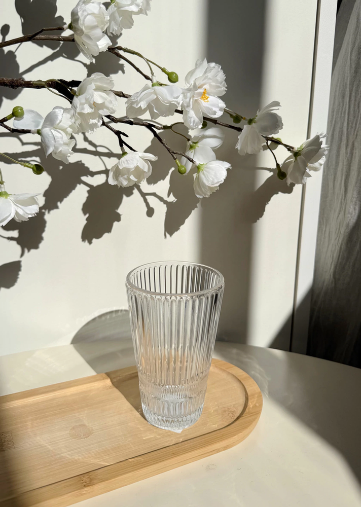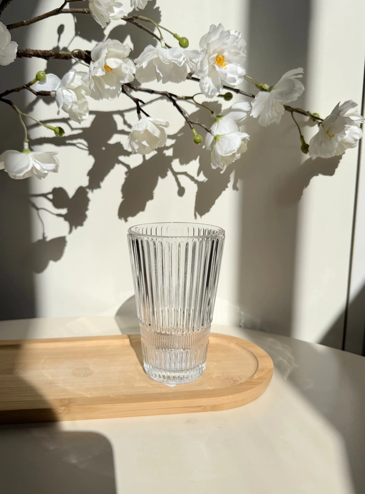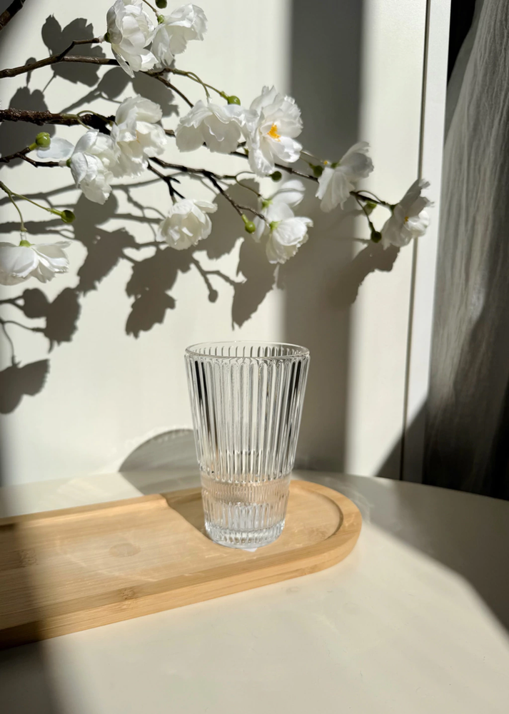 Set x6 vasos cónicos de vidrio rayado con guarda rayada fina 8x12.5cm