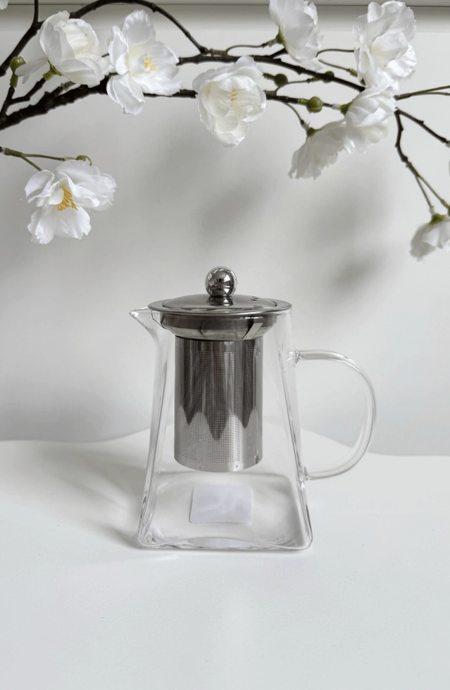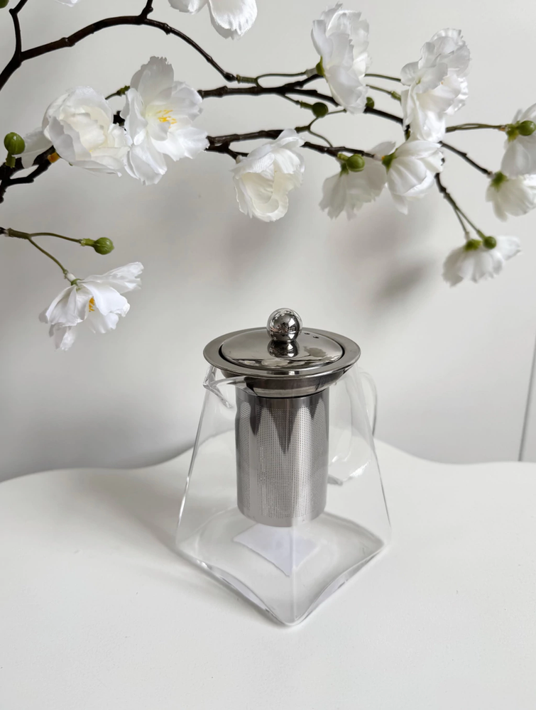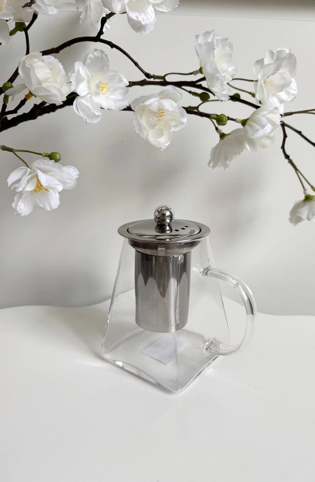 Tetera vidr pirámidal base cuadrada con filtro y tapa acero