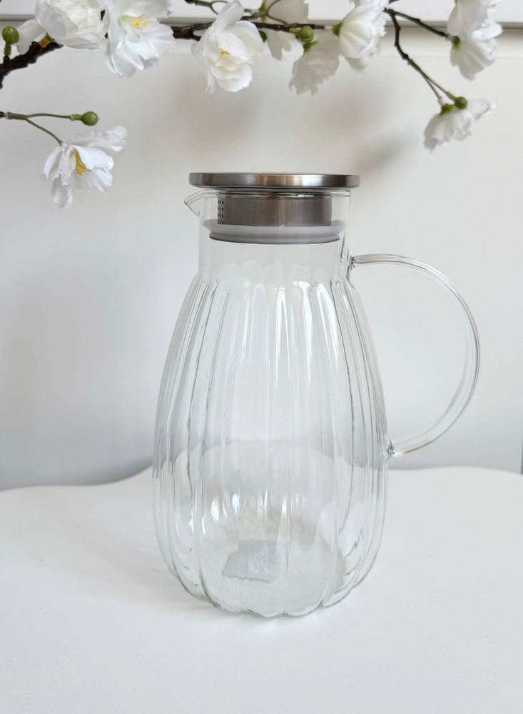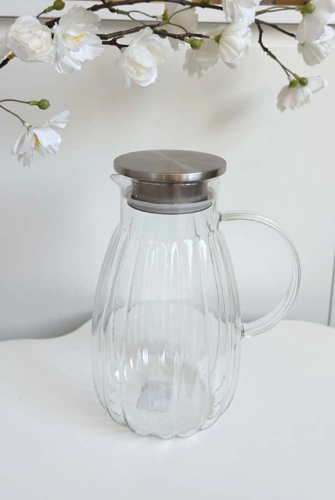 Jarra de vidrio redonda rayada con tapa de metal 1800ml