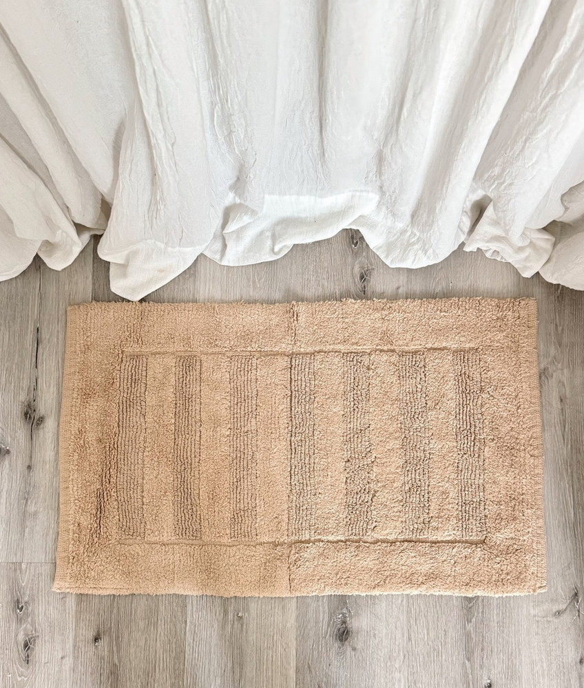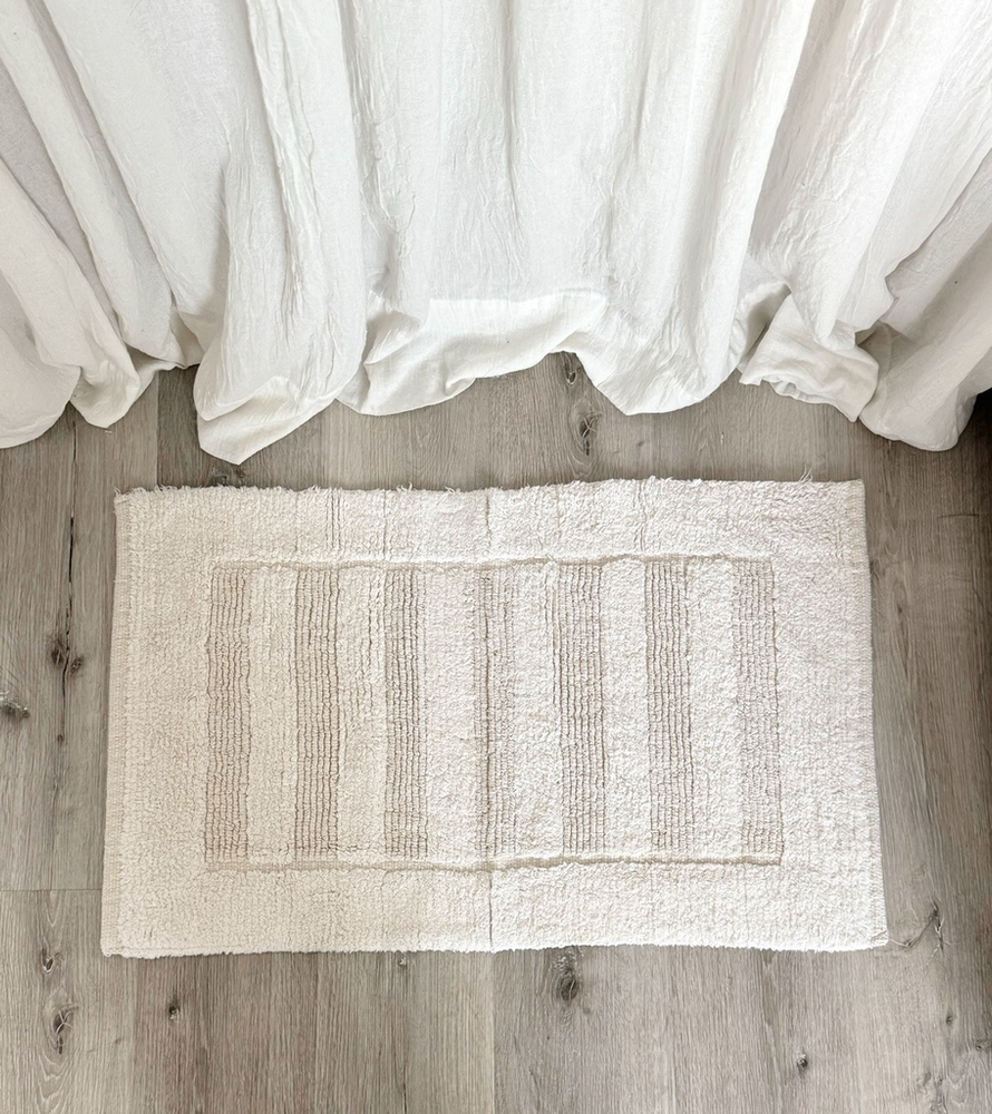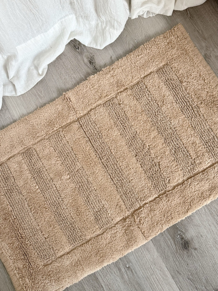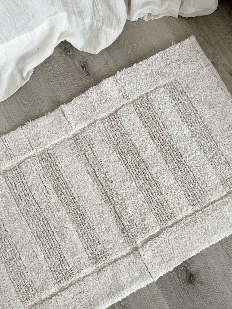 Alfombra baño 100% algodon con franjas pelo corto Beige