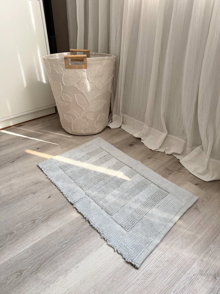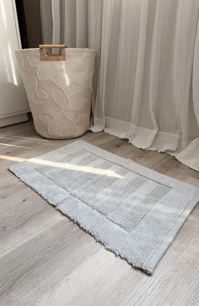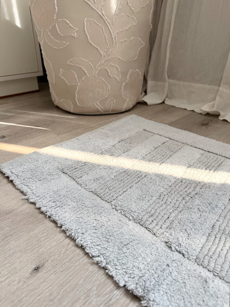 Alfombra baño 100% algodon con franjas pelo corto gris