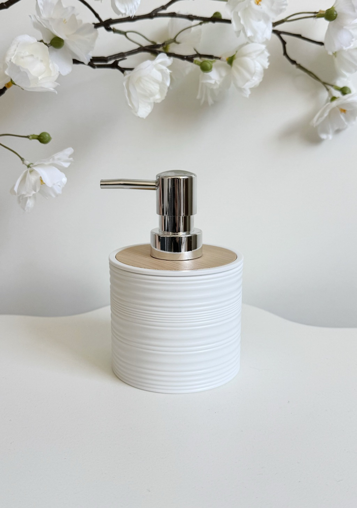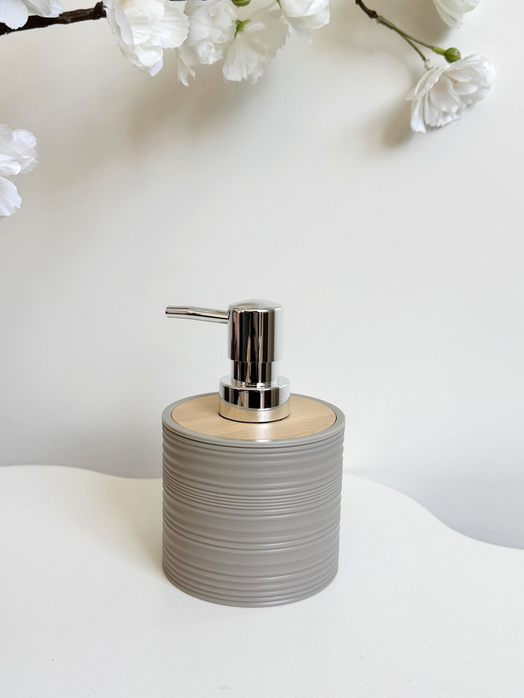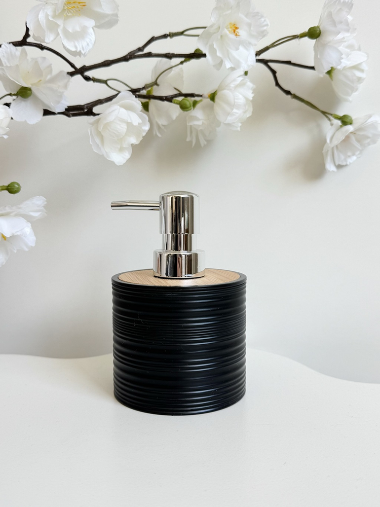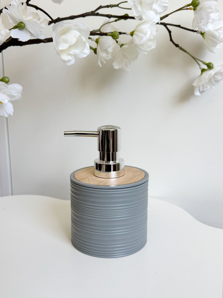 Dispenser para jabón líquido rayado de plástico con bamboo
