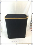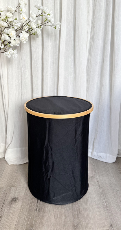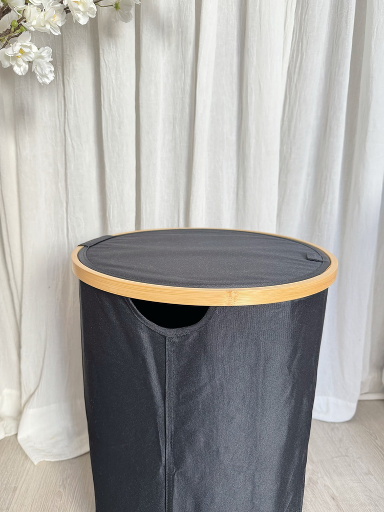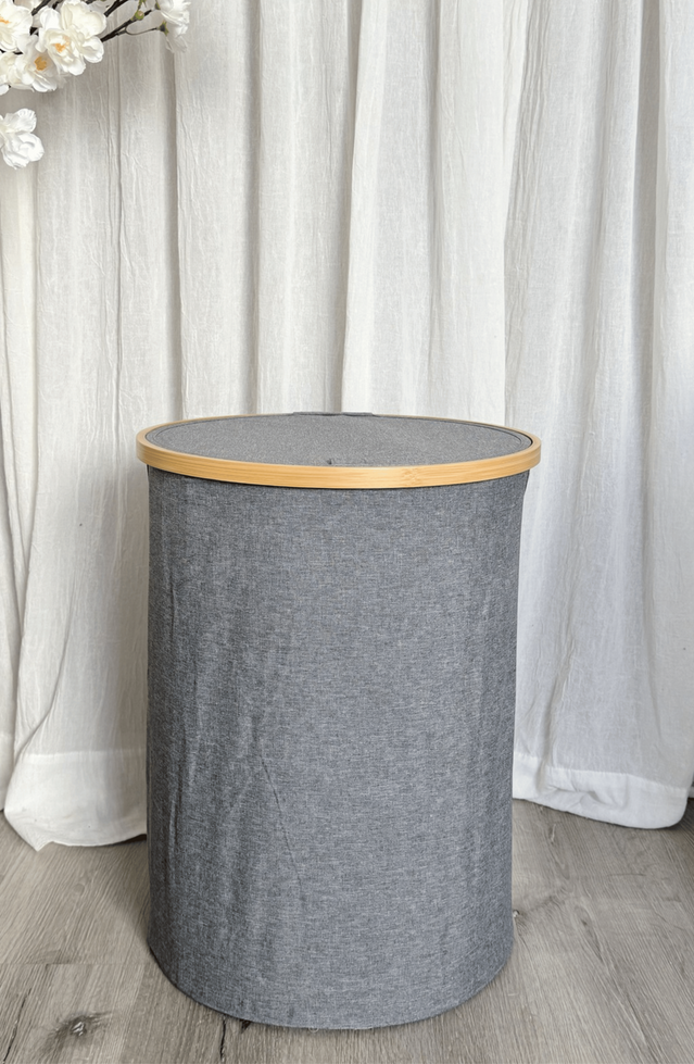 Cesto de ropa con tapa borde bamboo de tela redondo