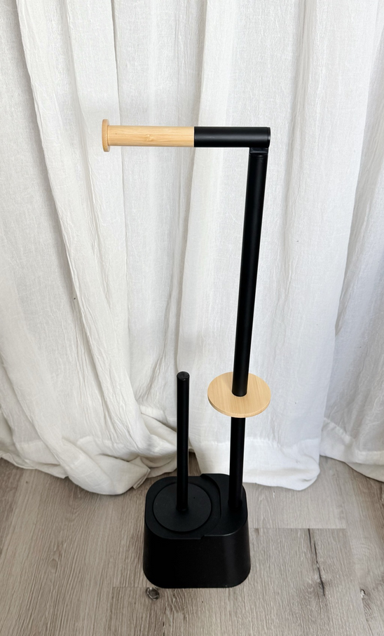 Porta papel higiénico con cepillo de baño negro