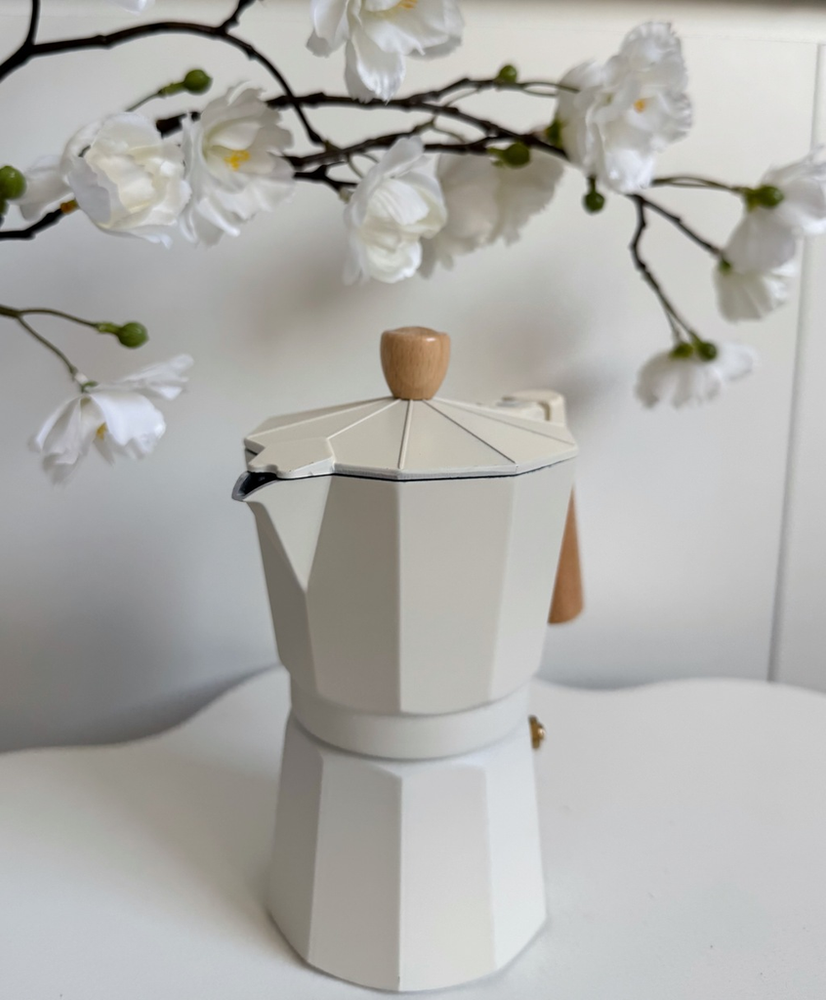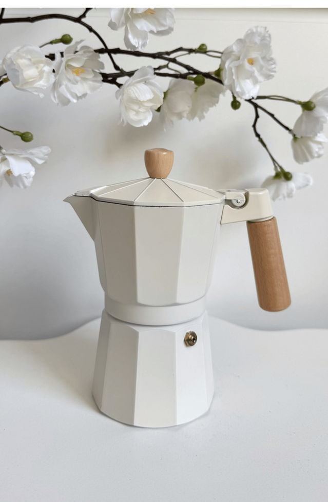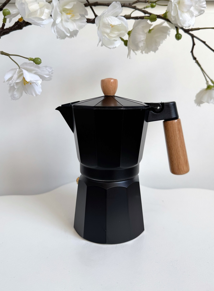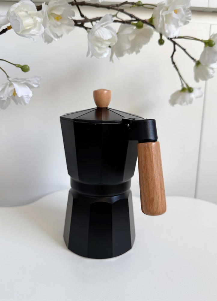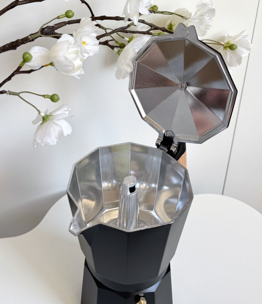 Cafetera italiana aluminio octogonal 6 cup con mango y botón de bamboo 300ml