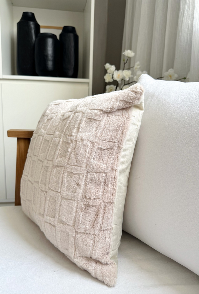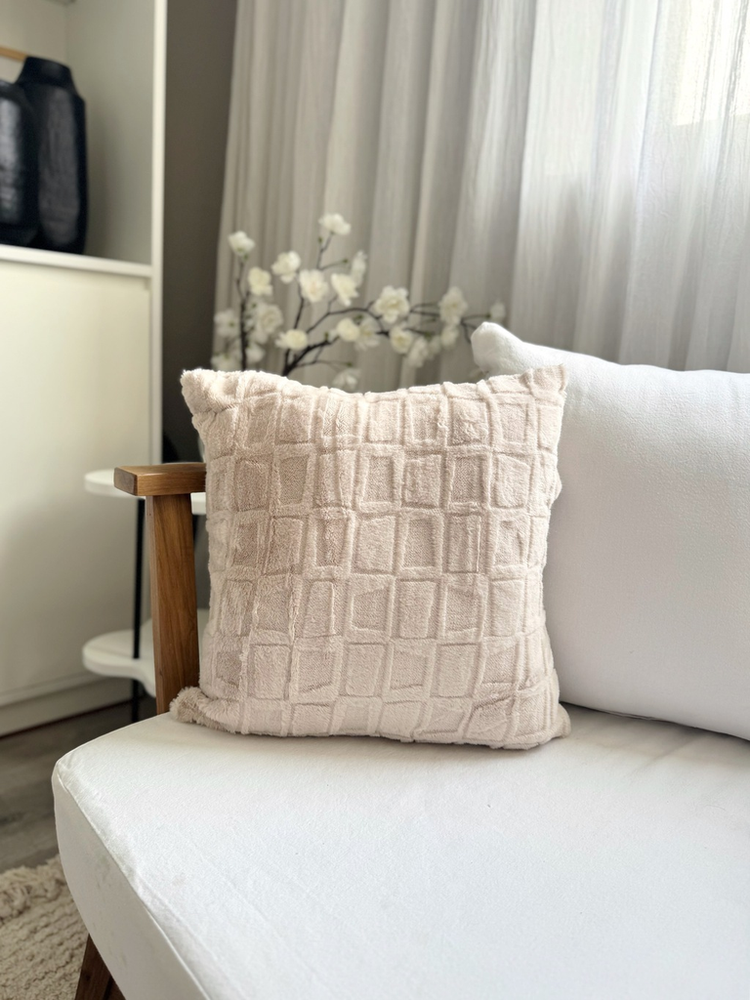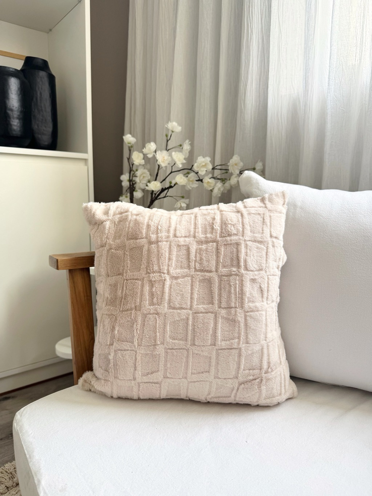 Funda de almohadón trama cuadrados una cara natural
