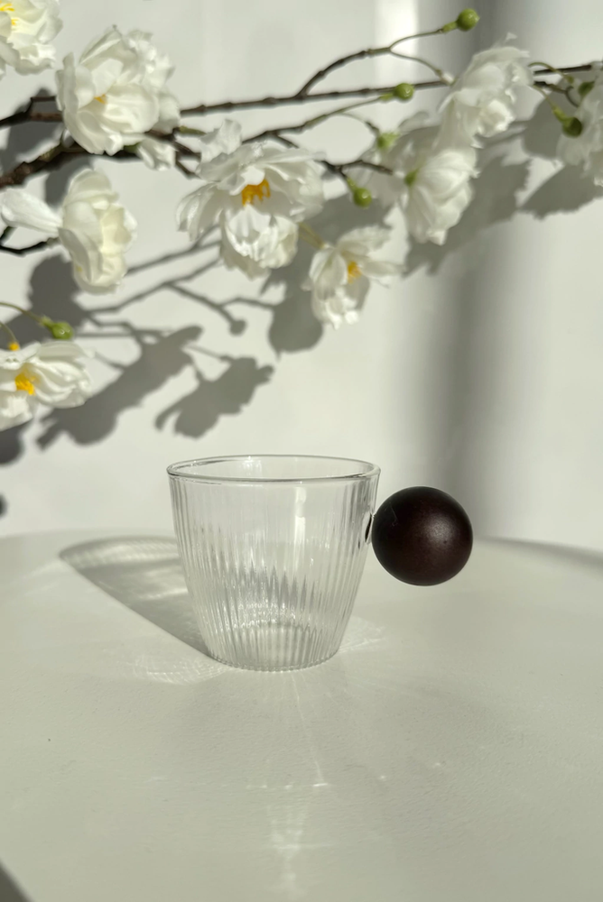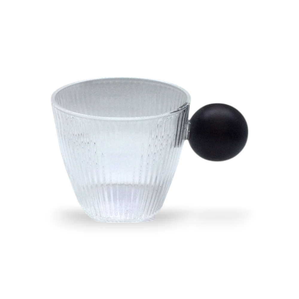 Vaso de café de vidrio rayado con asa esfera de madera 100ml