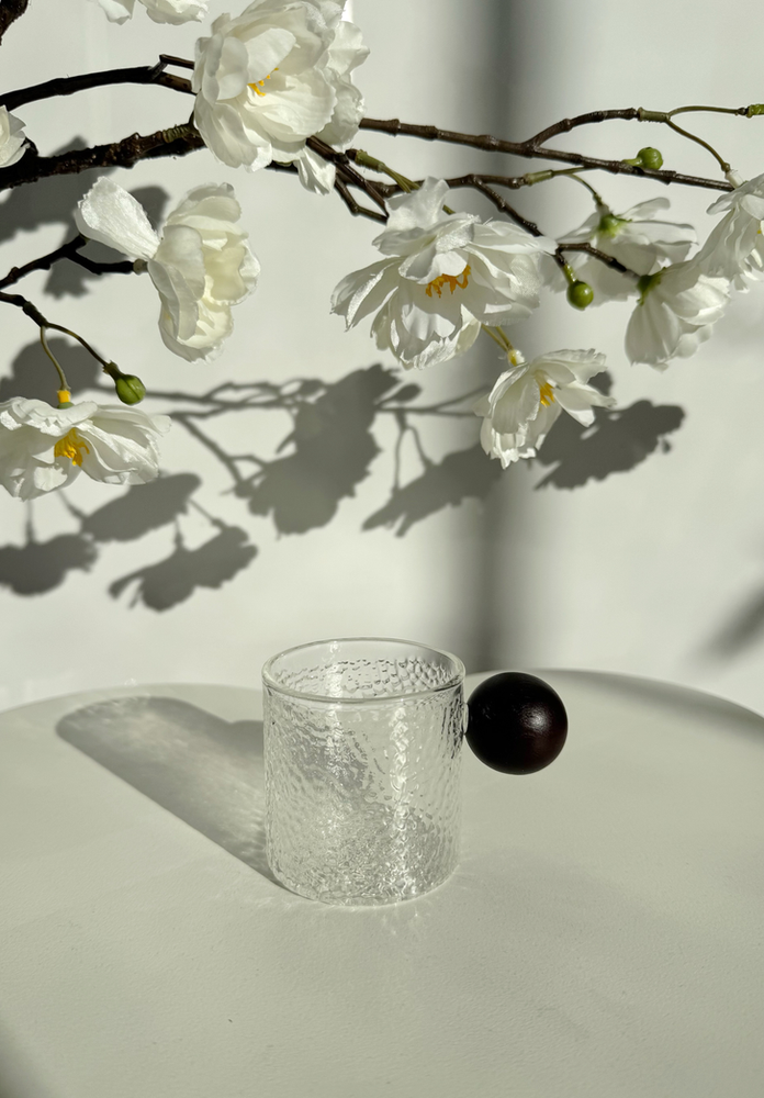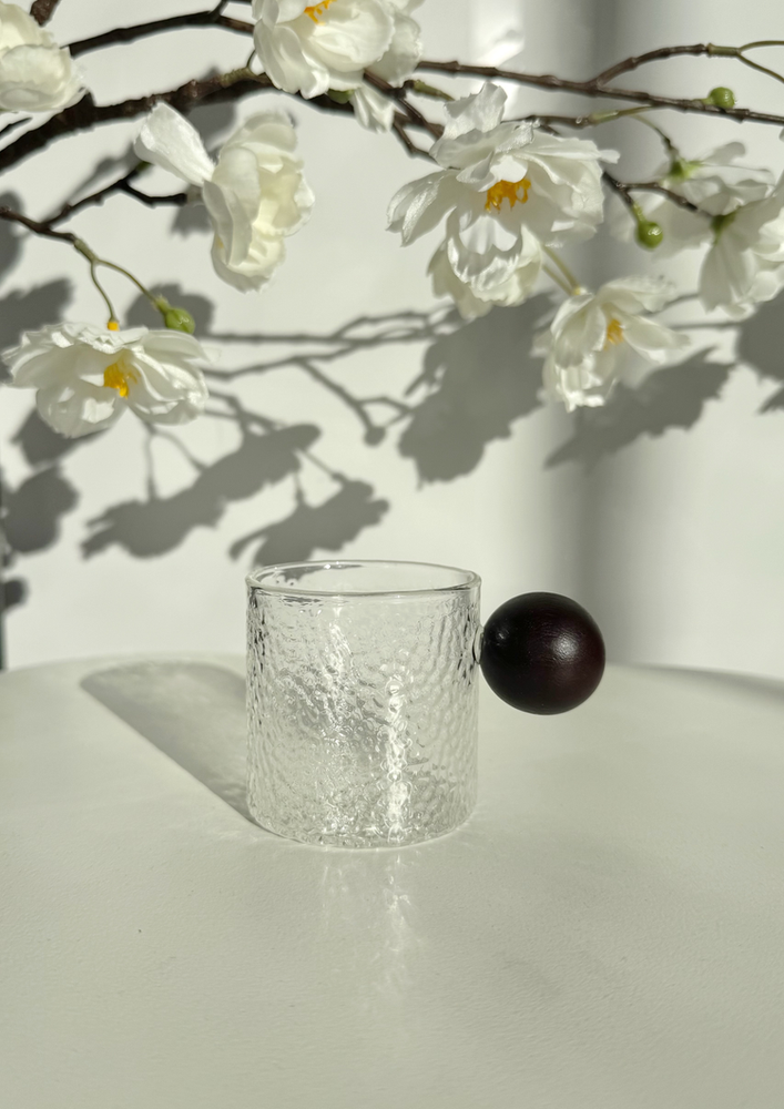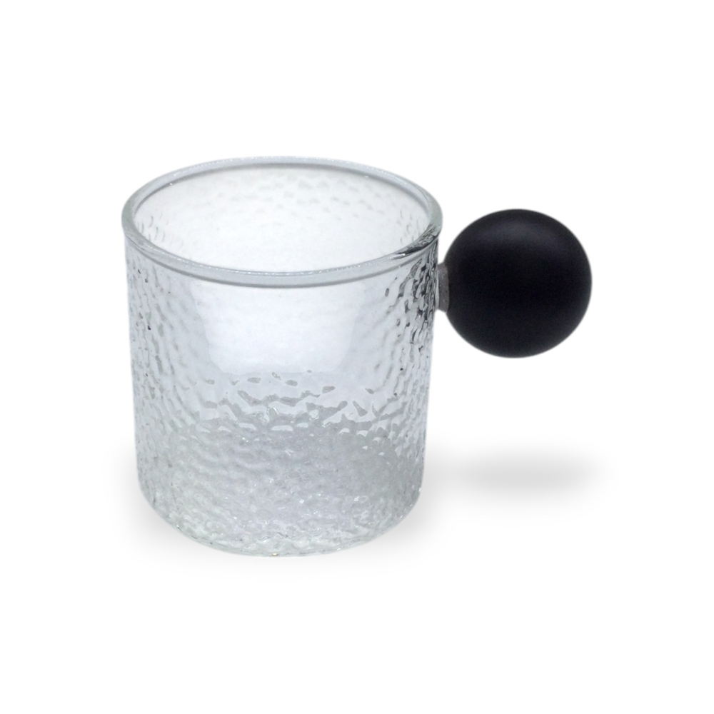 Vaso de café de vidrio martellé con asa esfera de madera 125ml