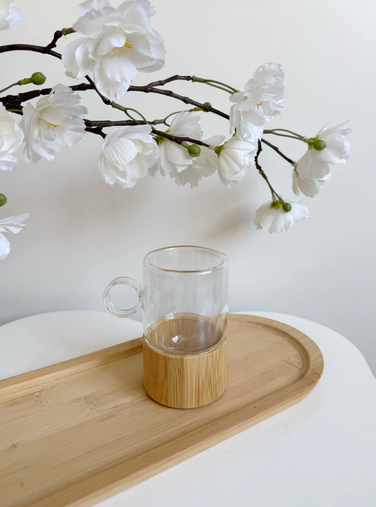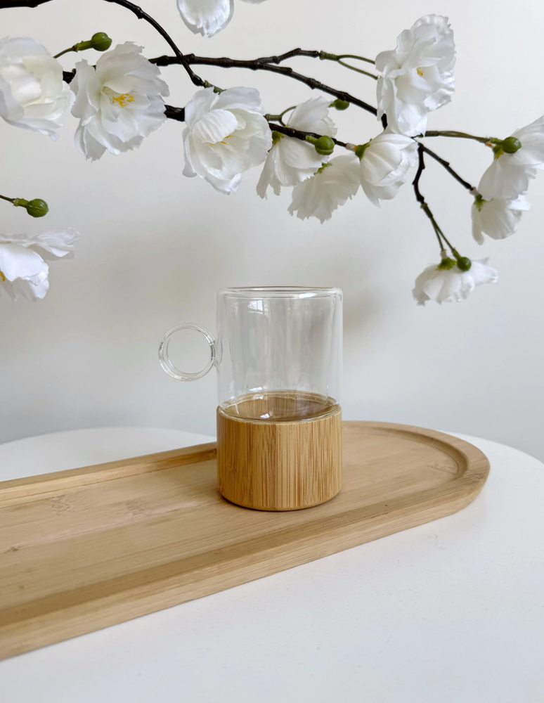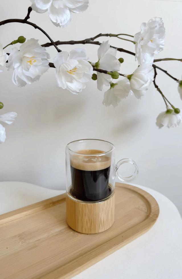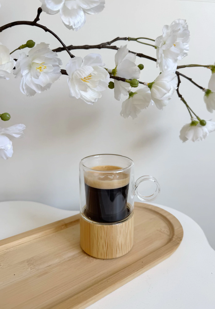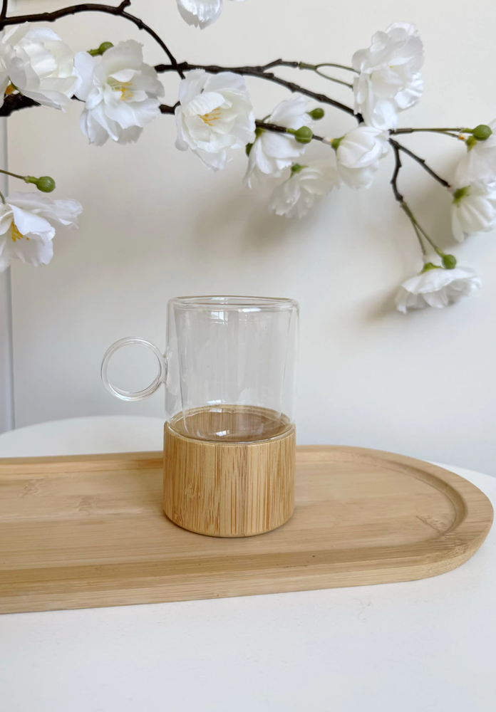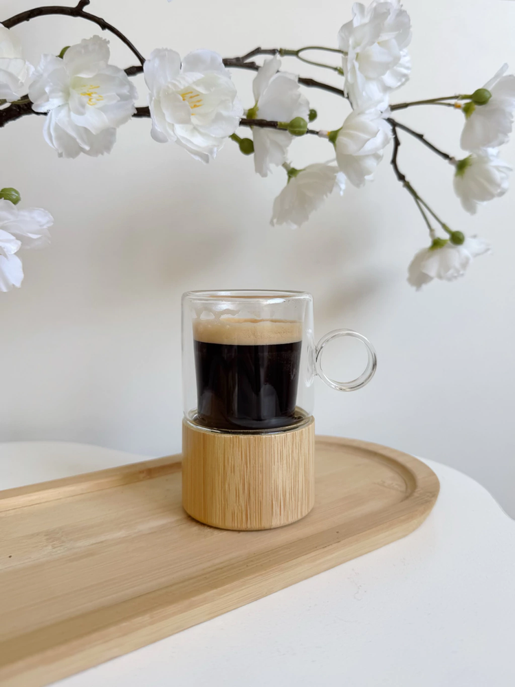 Vaso térmico doble vidrio con base de bamboo 120ml
