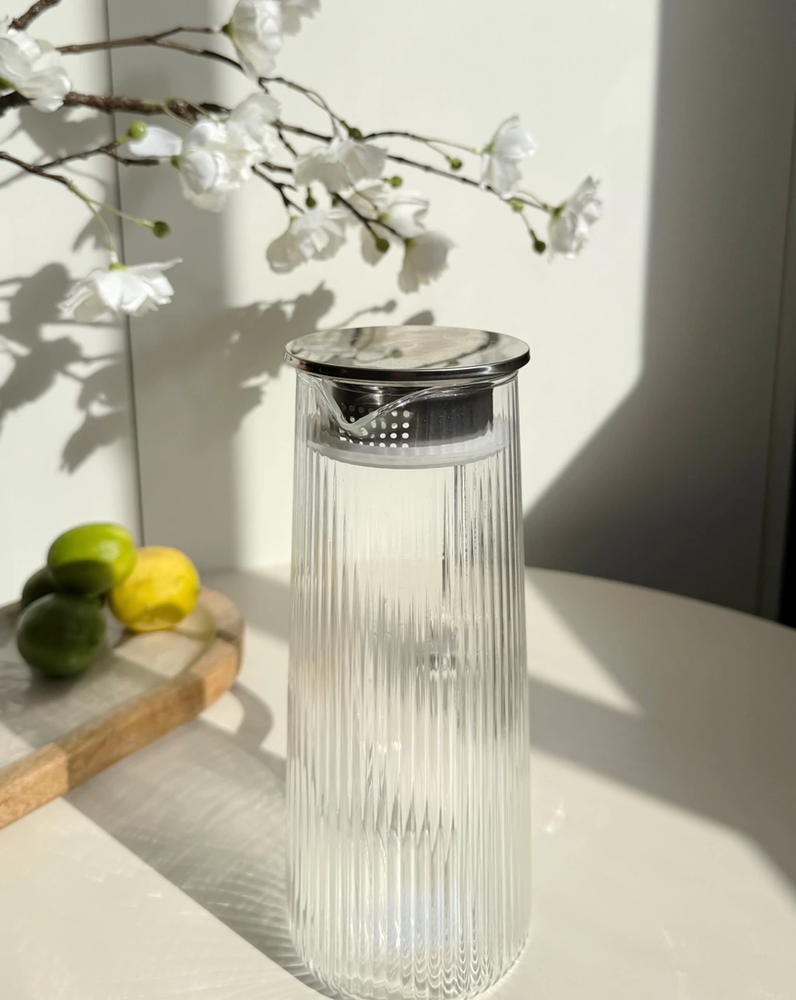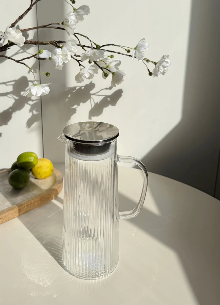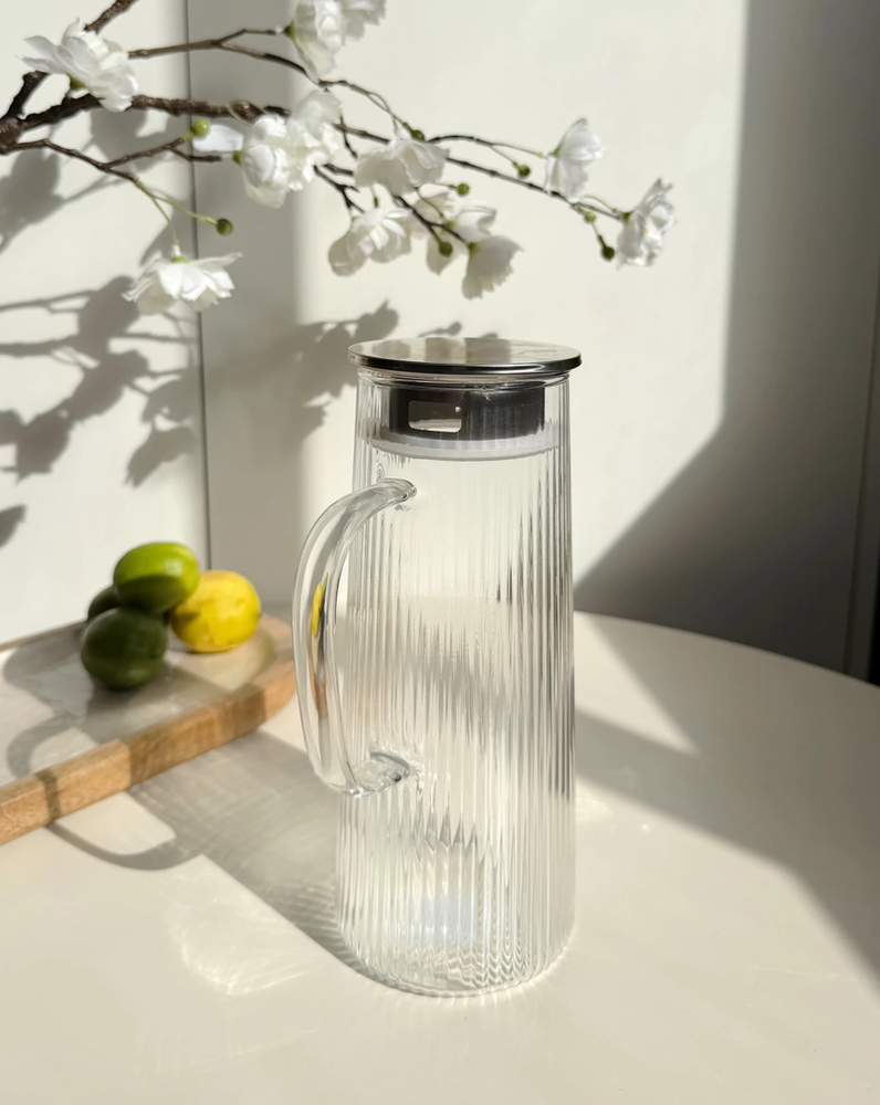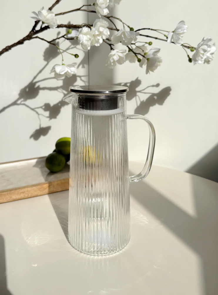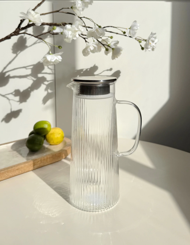 Jarra De Vidrio Con Rayas y Tapa de acero y Asa De Vidrio 1400Ml