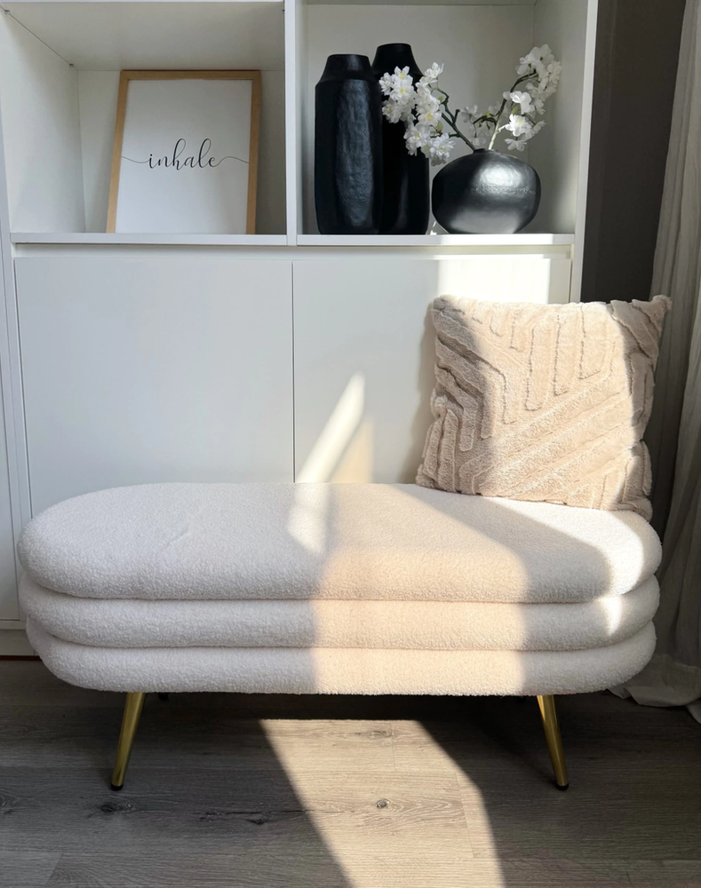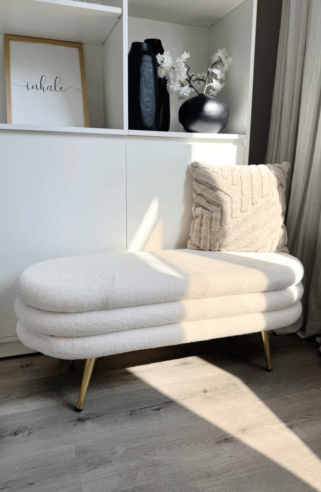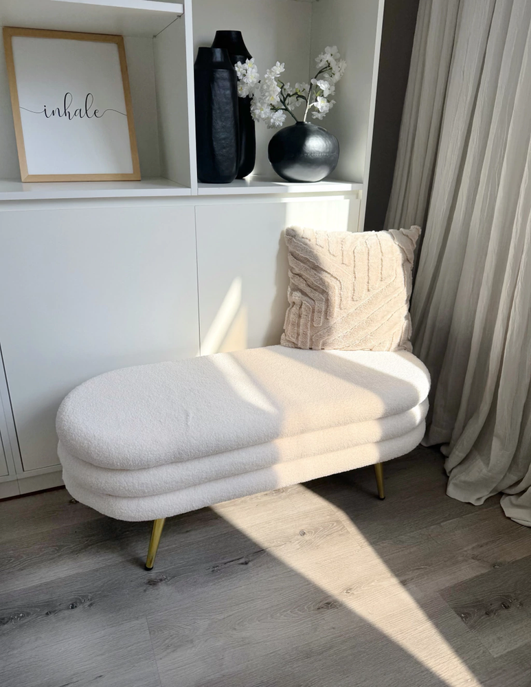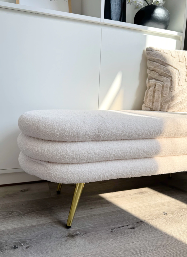 Puff sillón alargado para frente cama de tela tipo teddy super suave