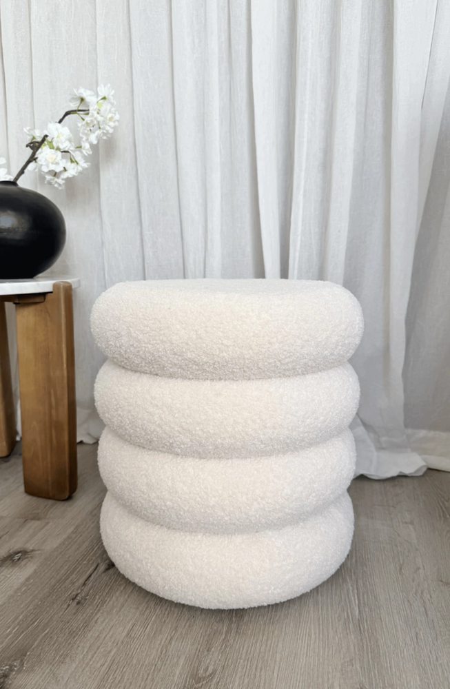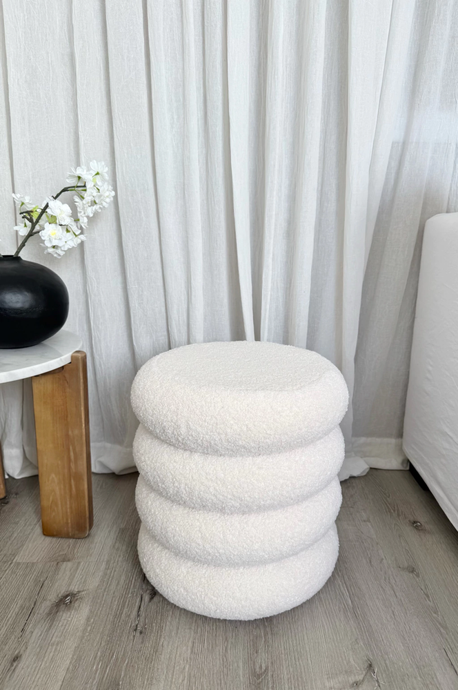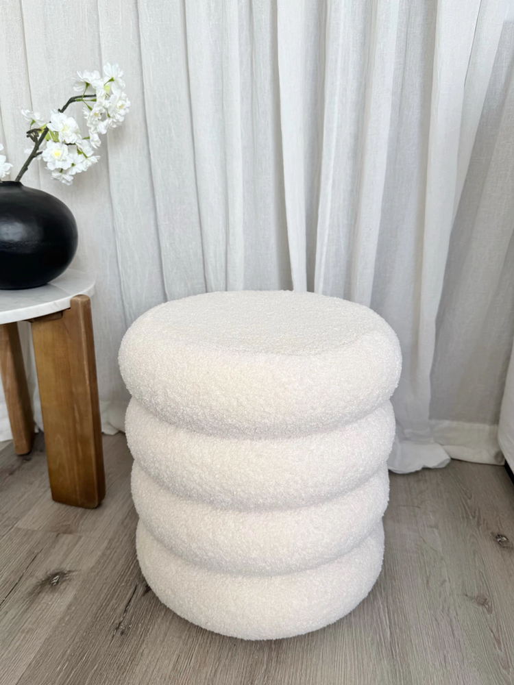 Puff de tela tipo teddy con círculos tipo aros color blanco