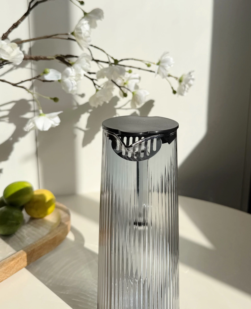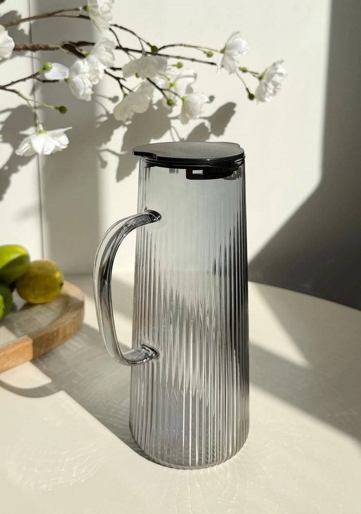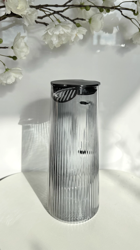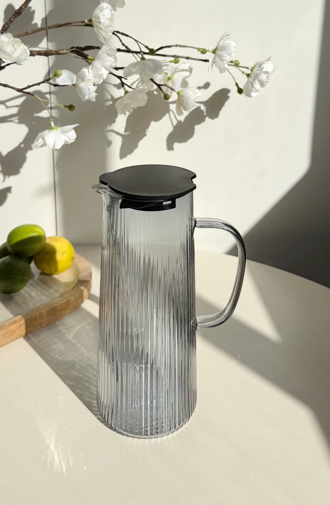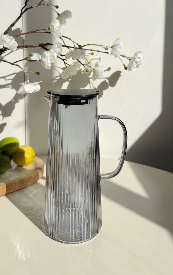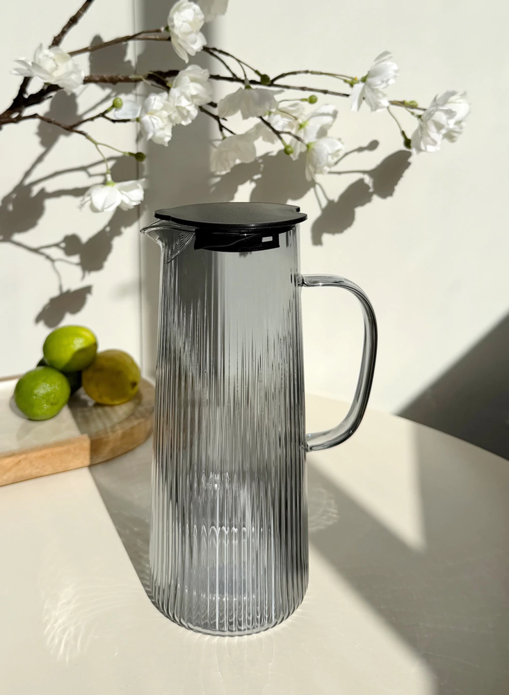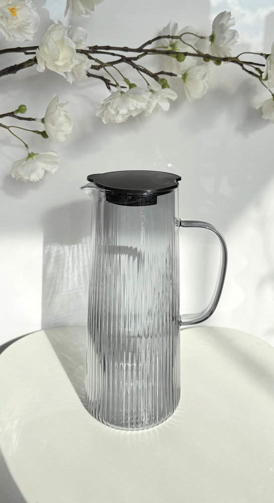 Jarra De Vidrio Con Rayas Tapa de acero y Asa De Vidrio 1400Ml