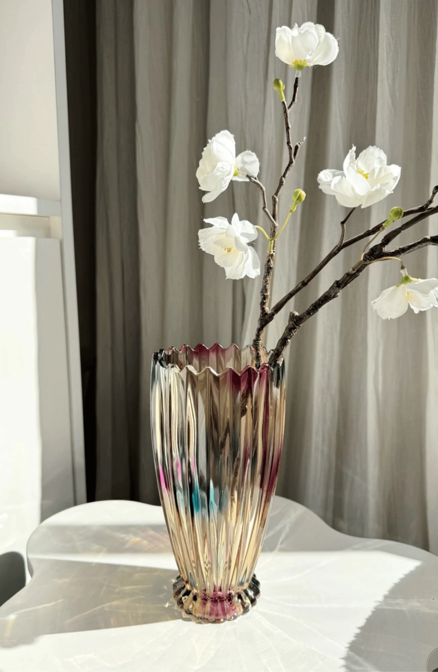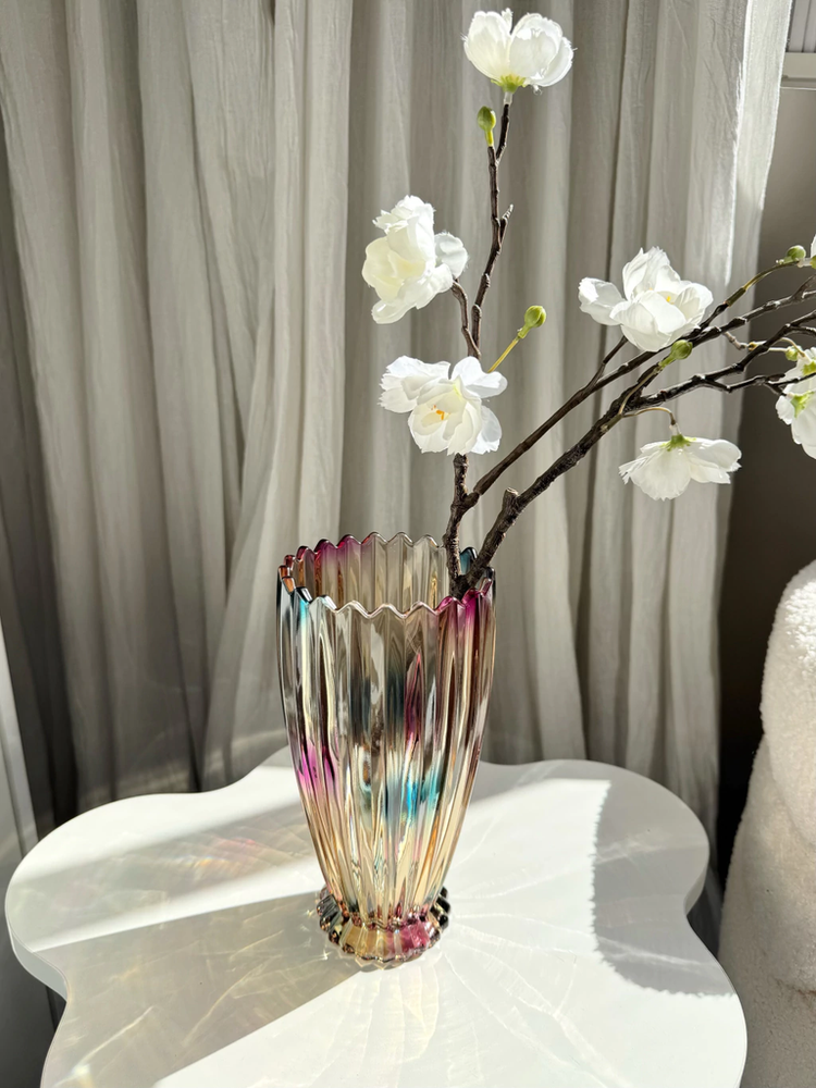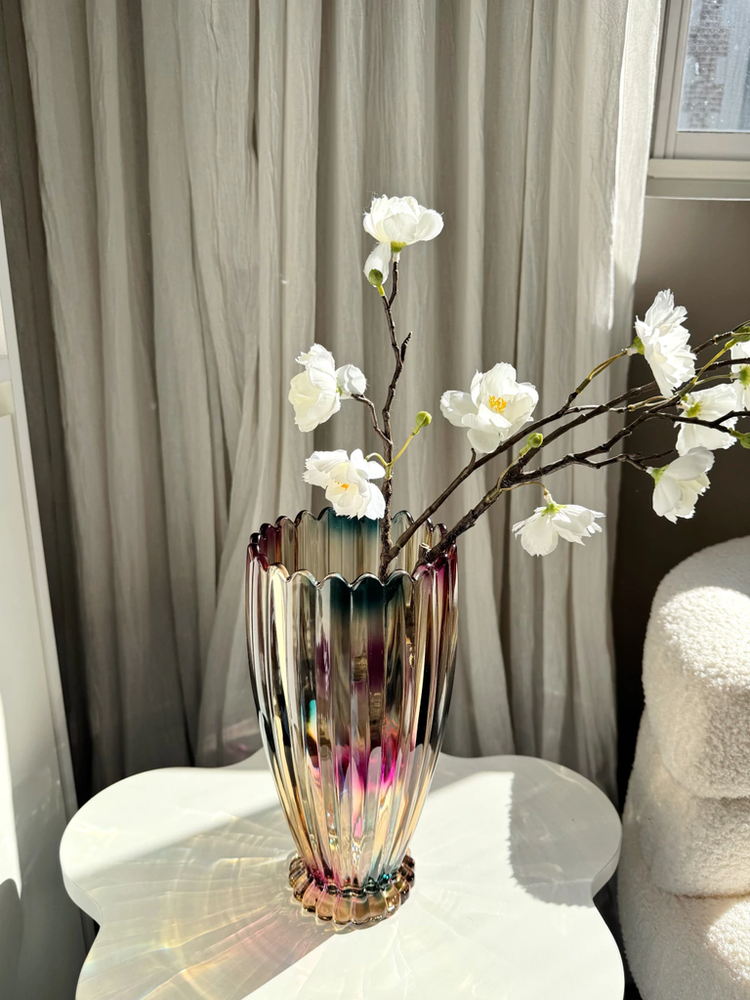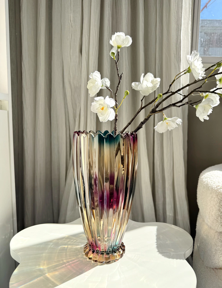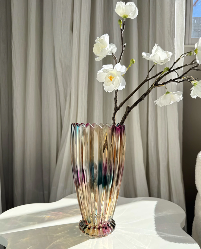 Florero acanalado con borde dentado tornasolado