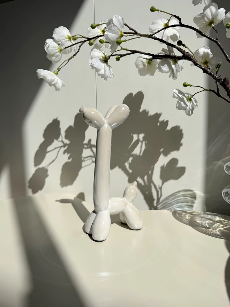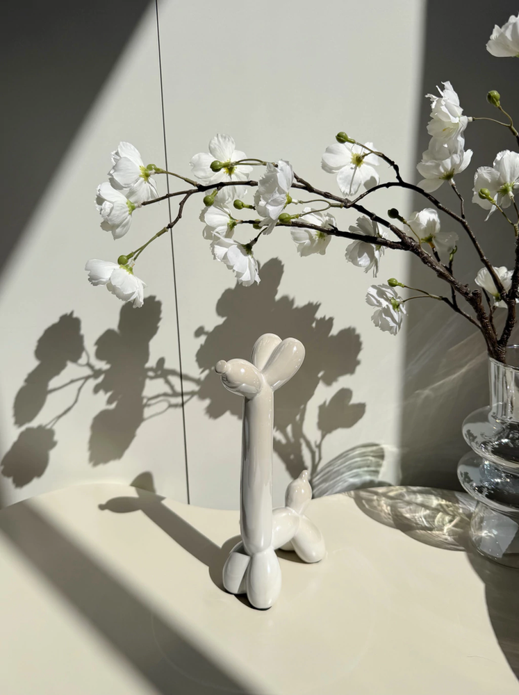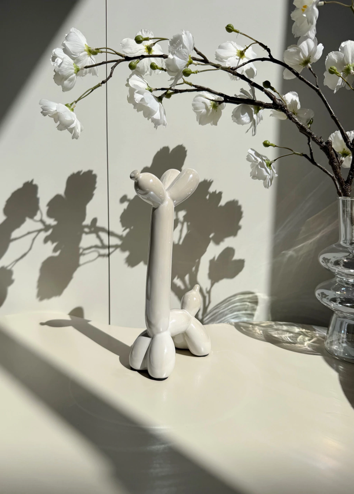 Adorno perro cuello largo de cerámica blanco
