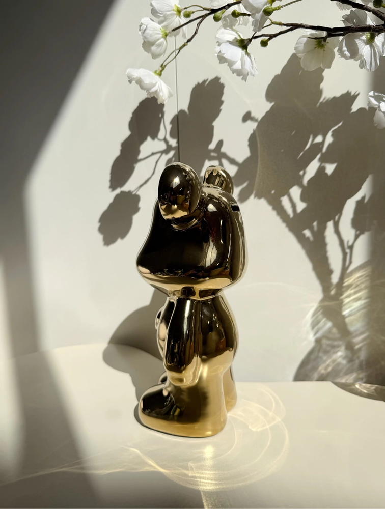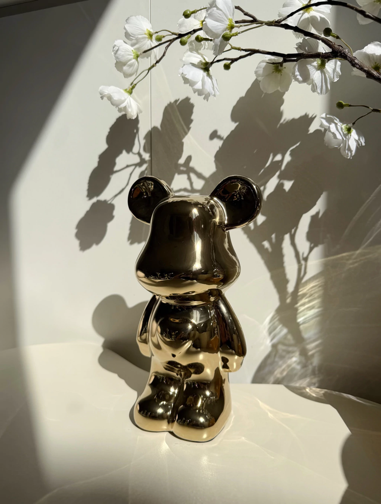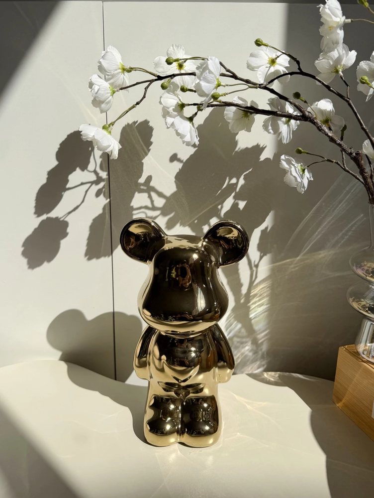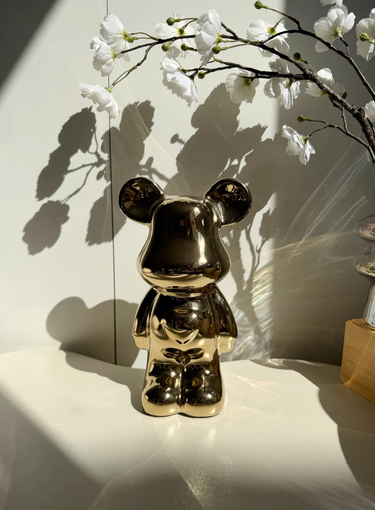 Adorno oso de cerámica dorado