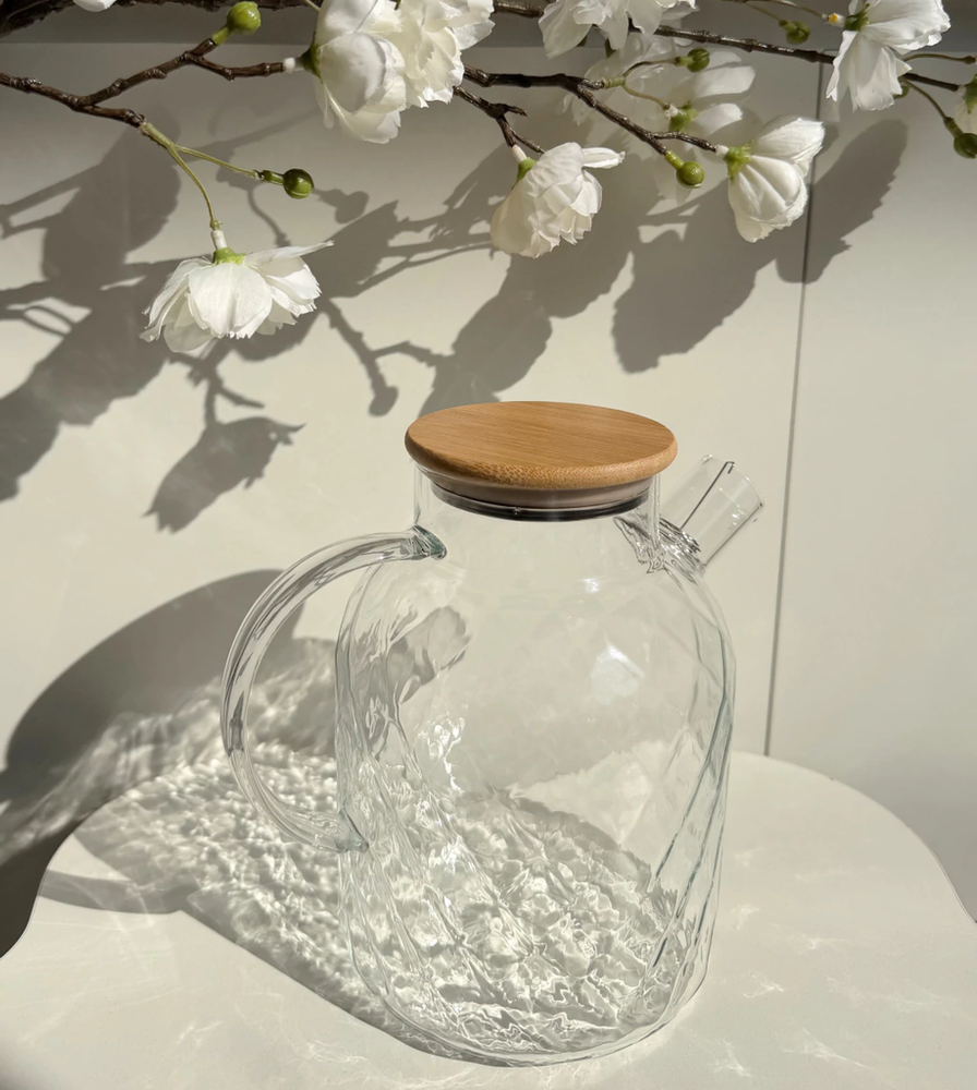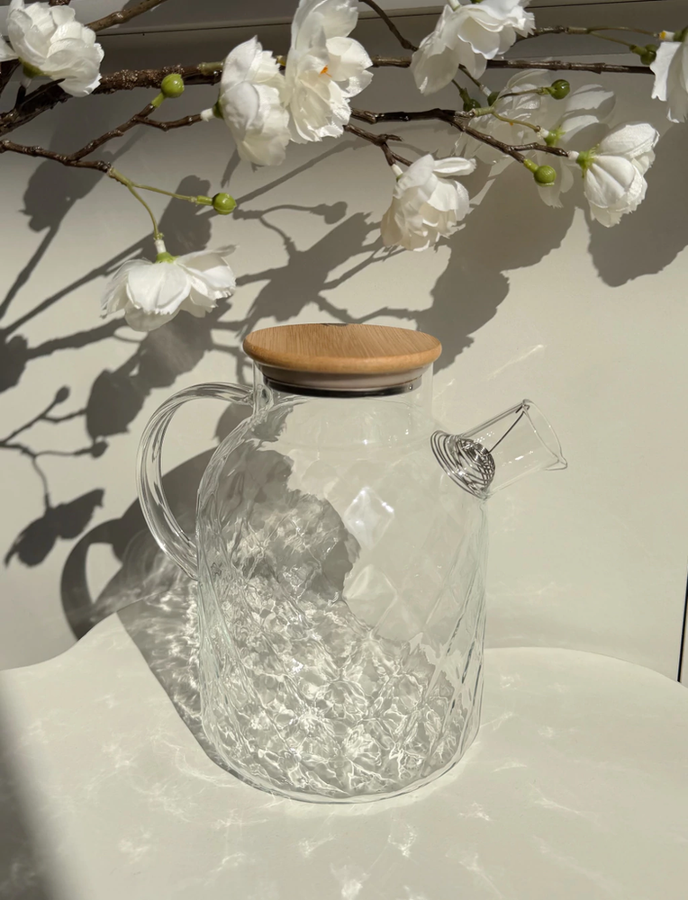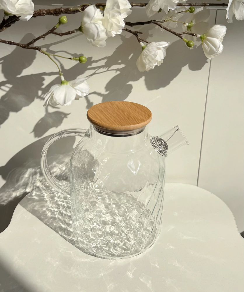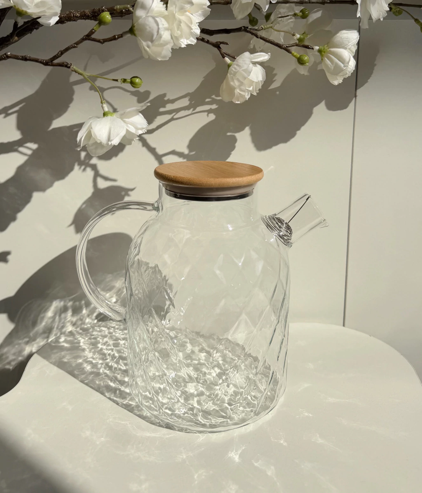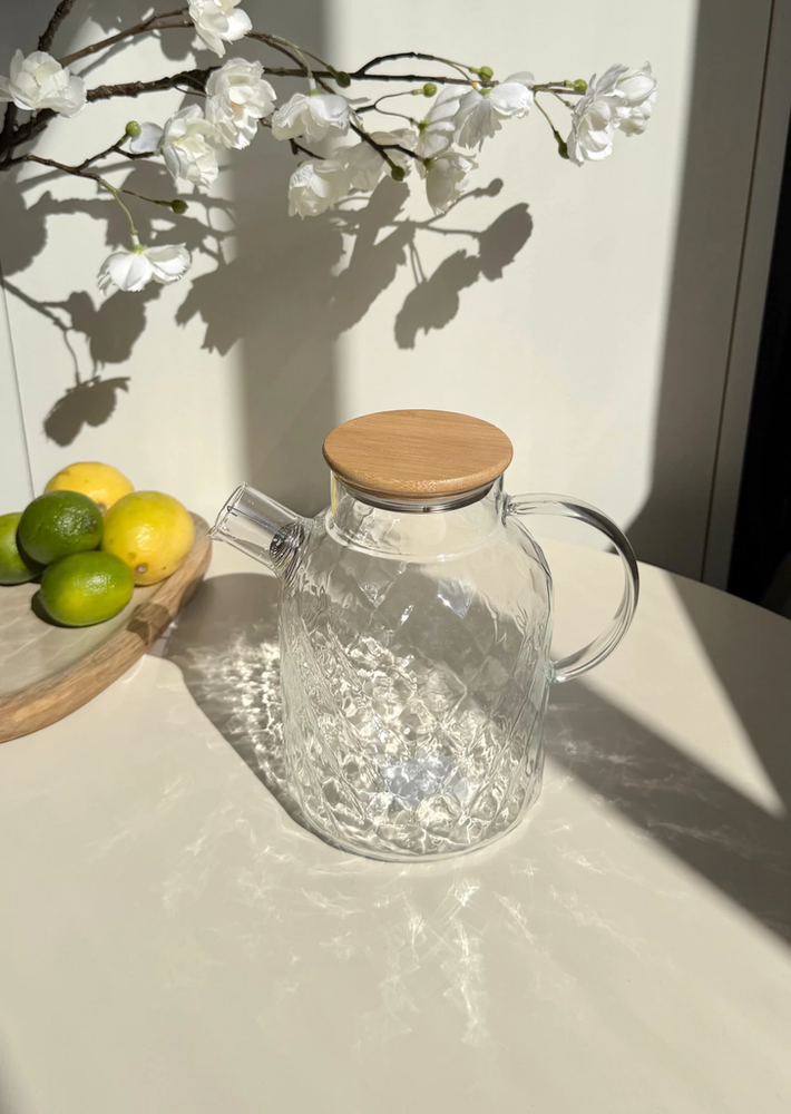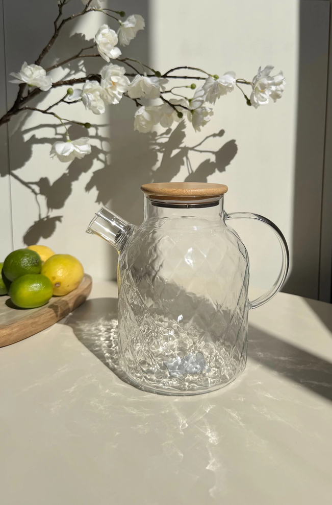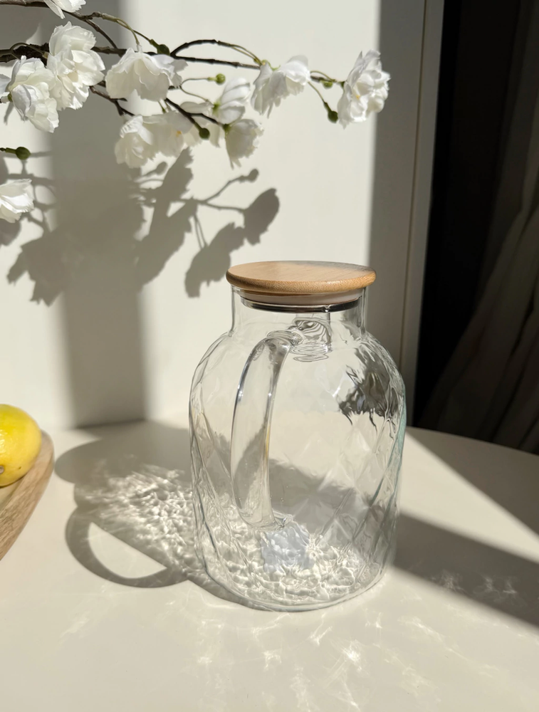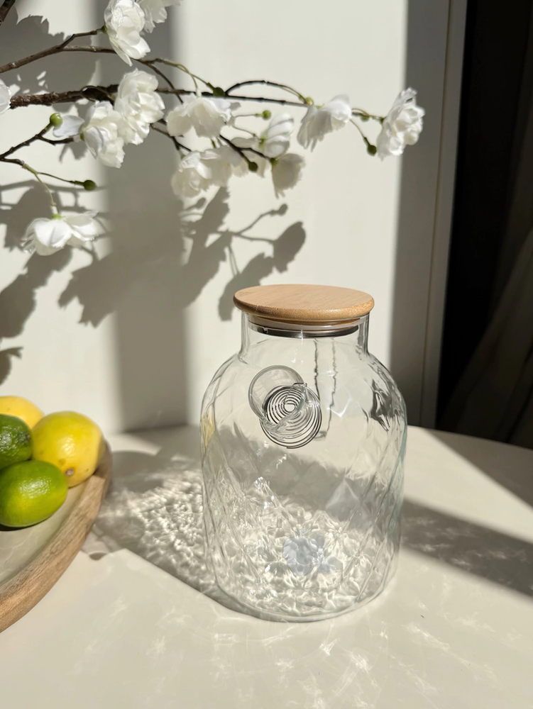 Jarra de vidrio con rombos y tapa de bamboo