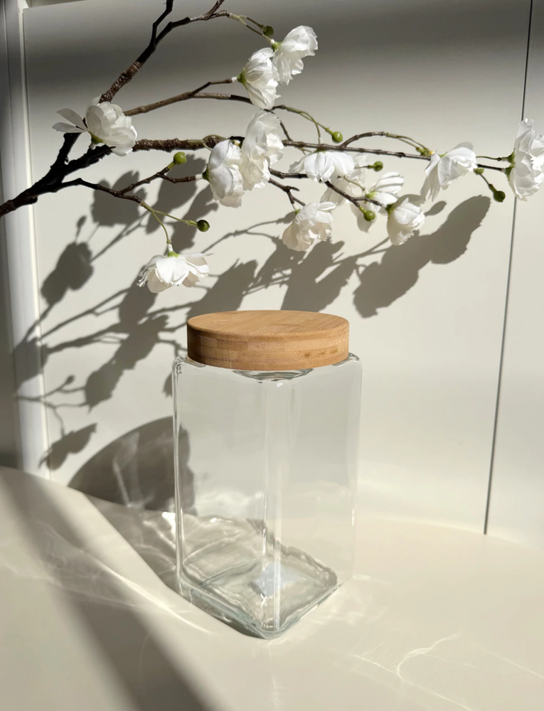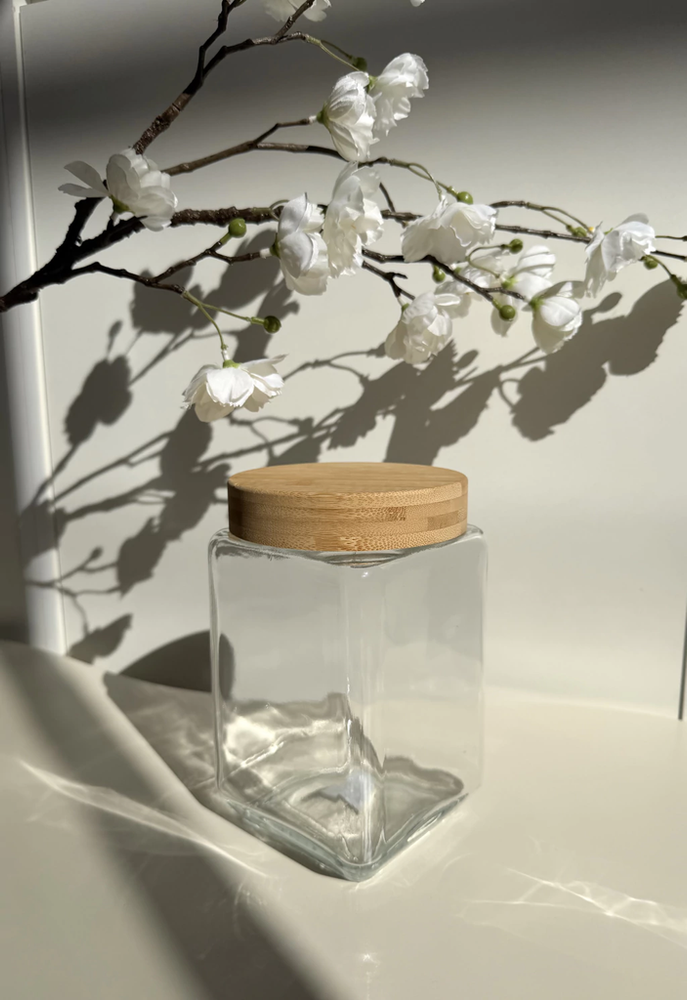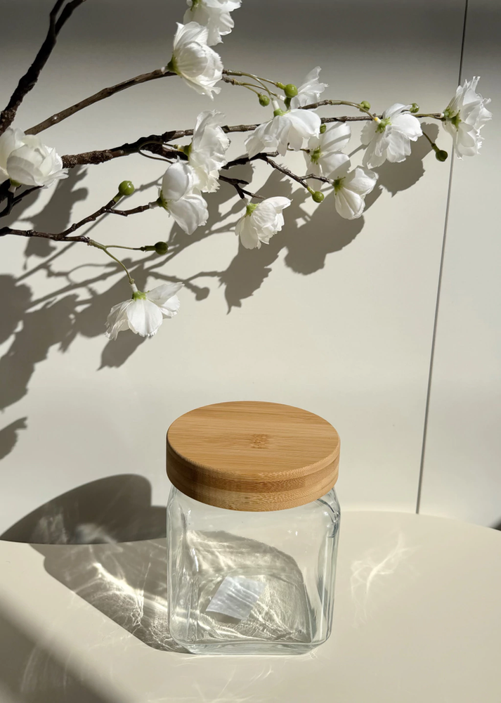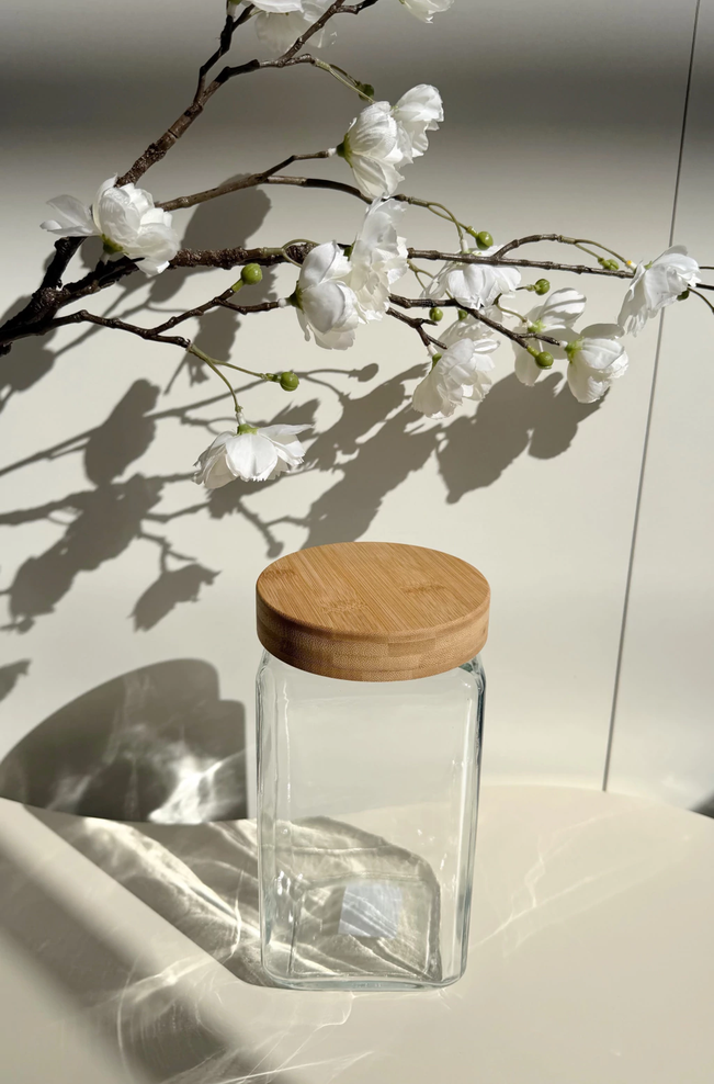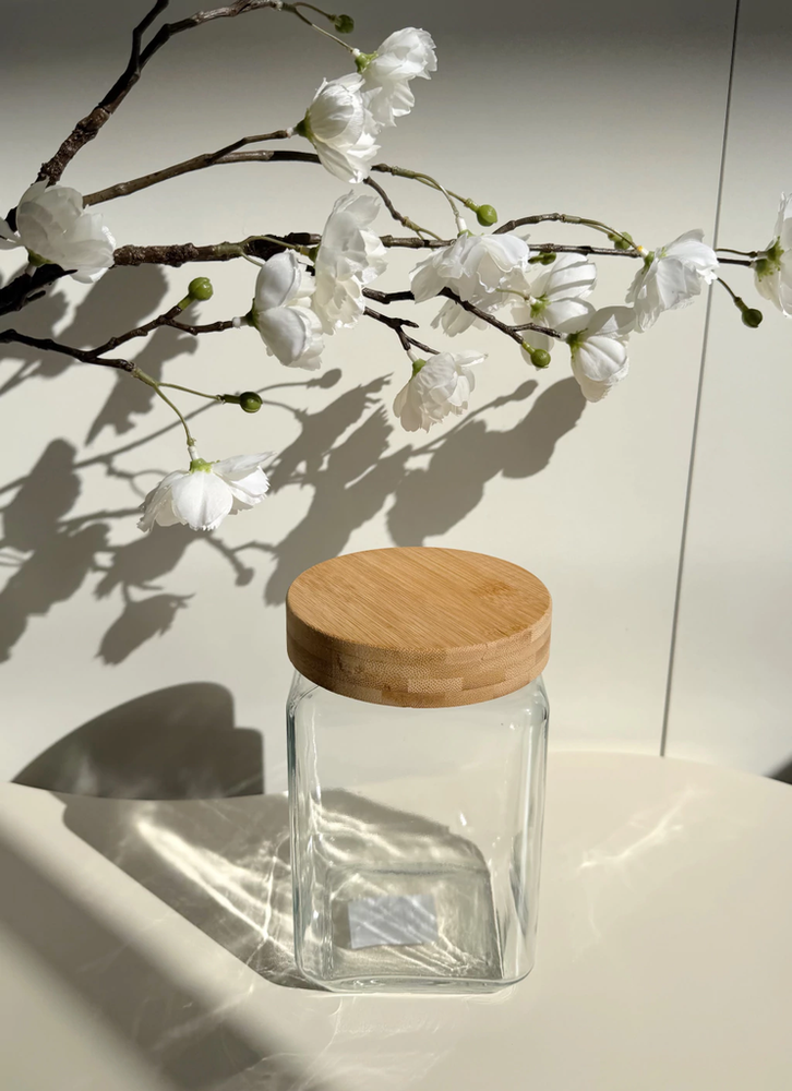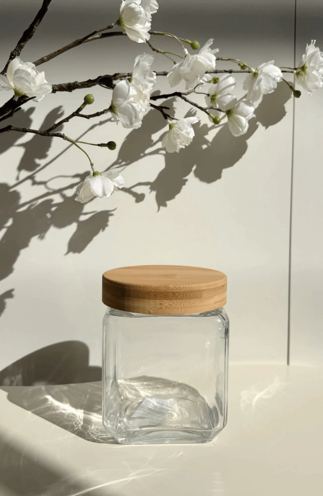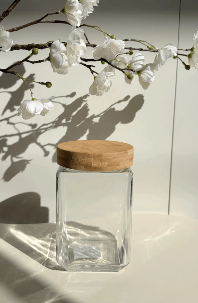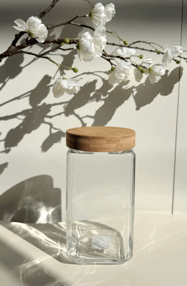 Frasco de vidrio con tapa de bamboo