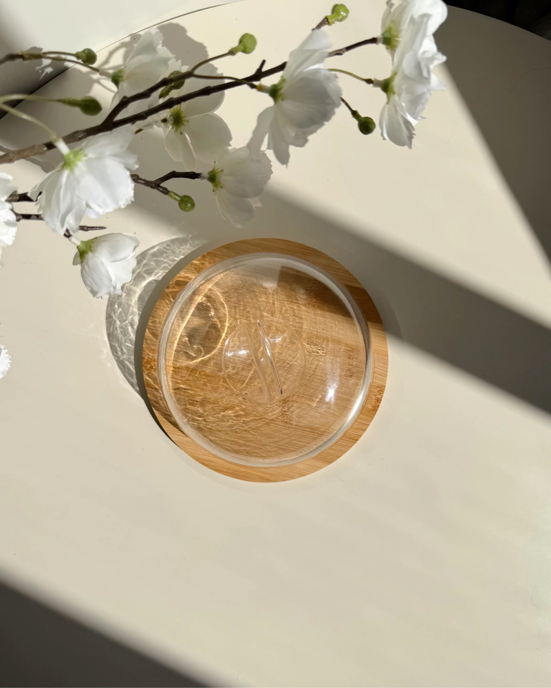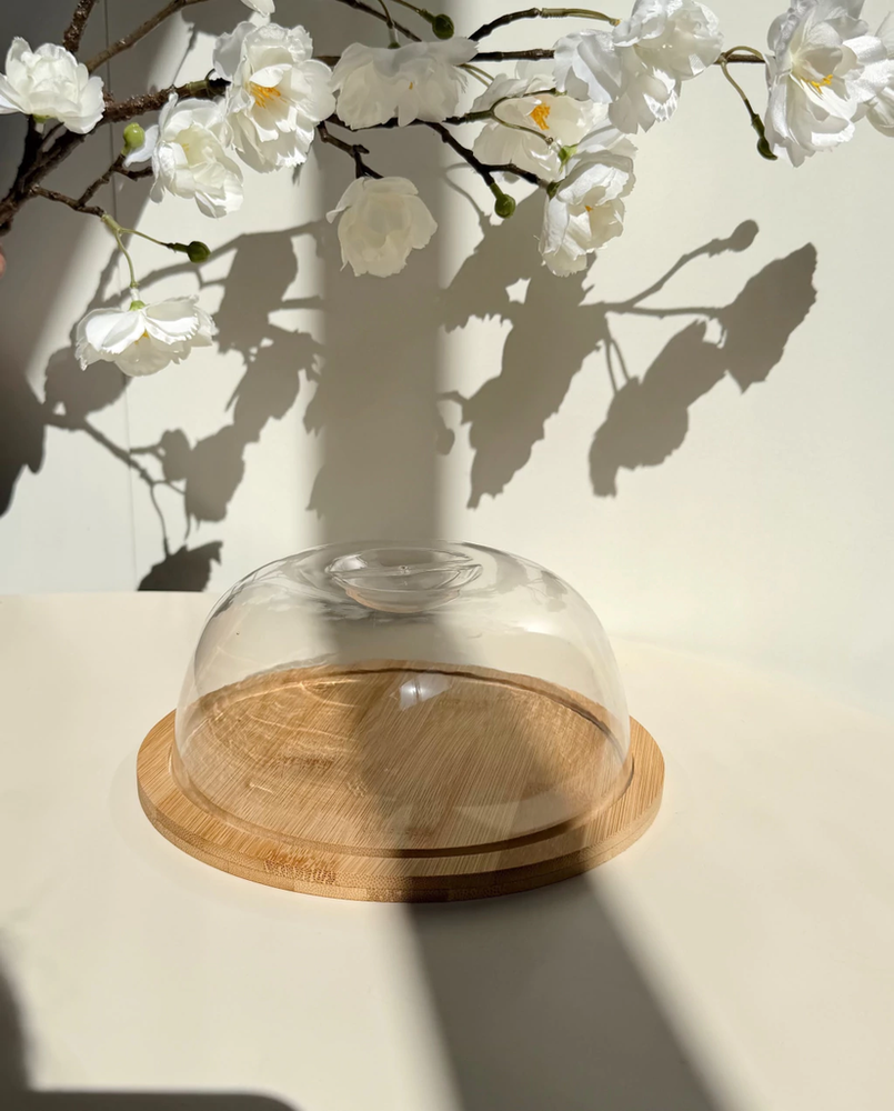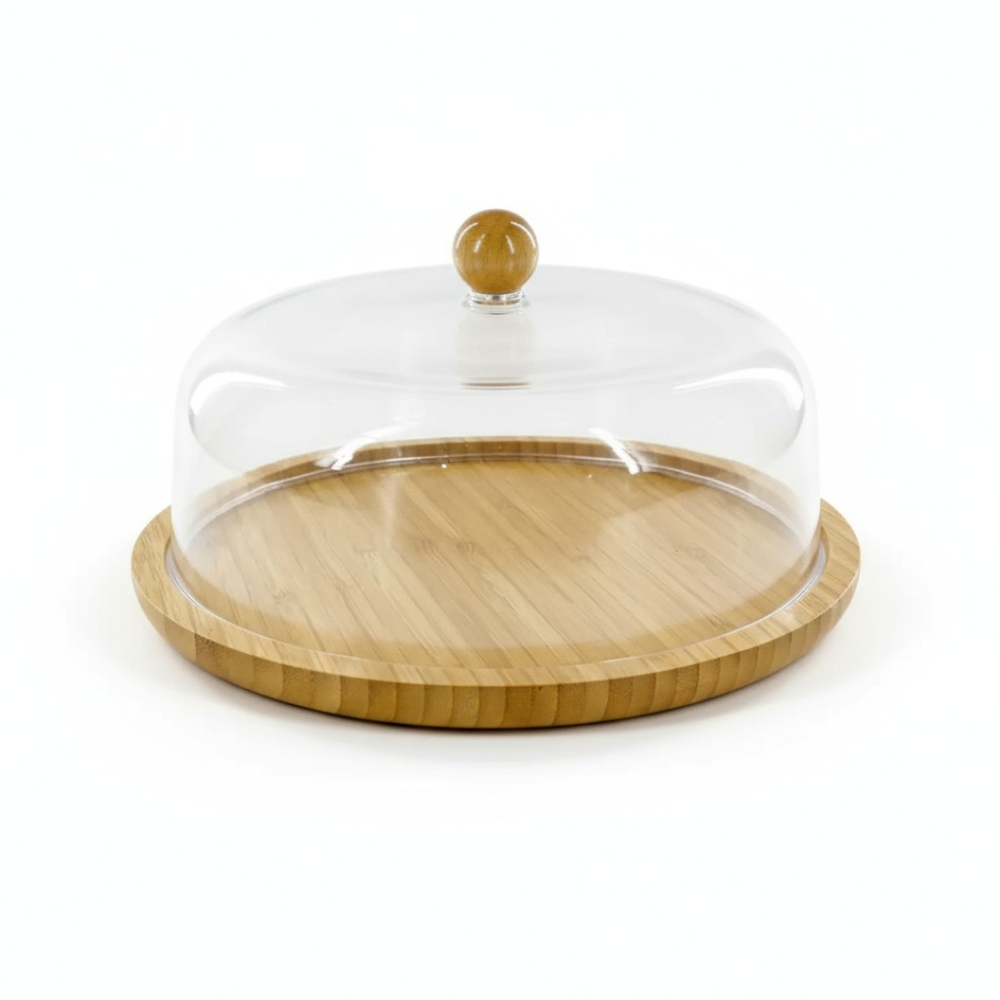Campana redonda de acrilico con base de bambu