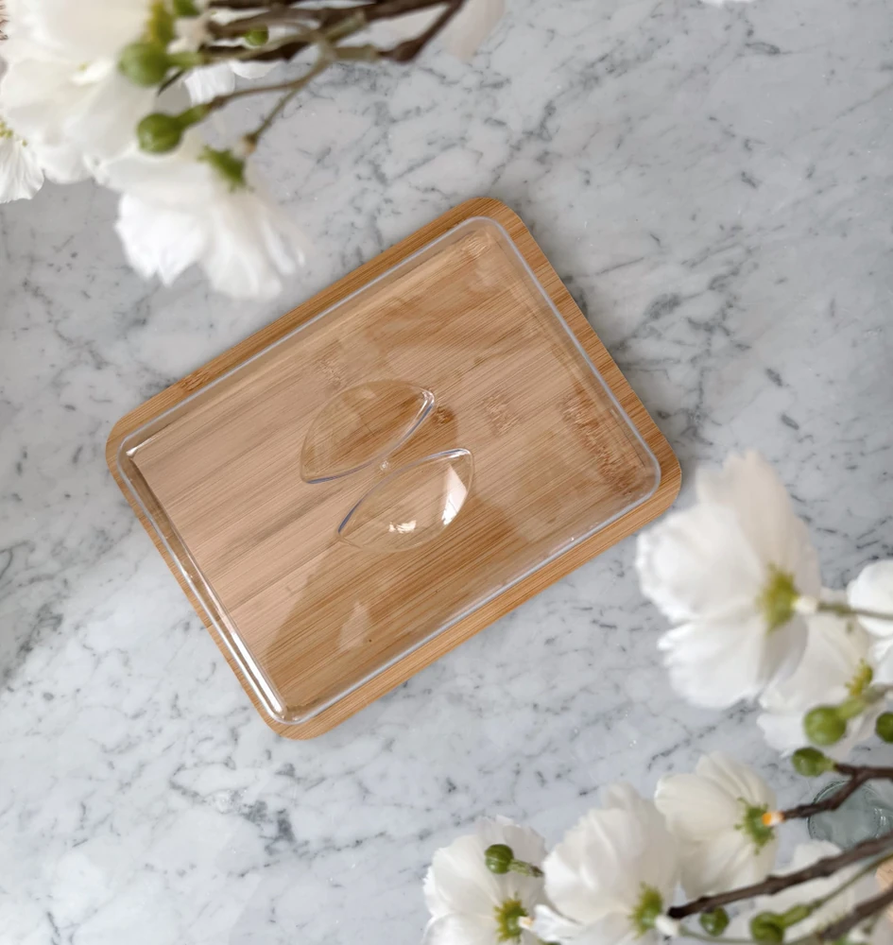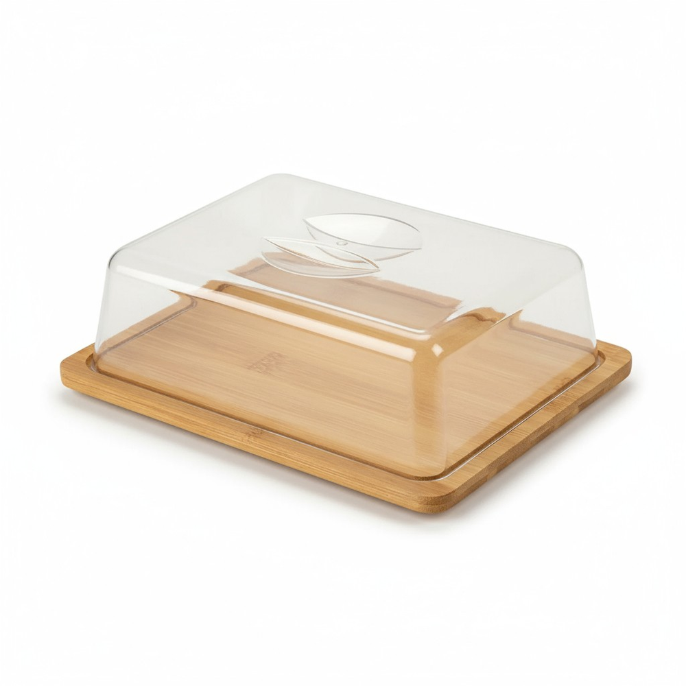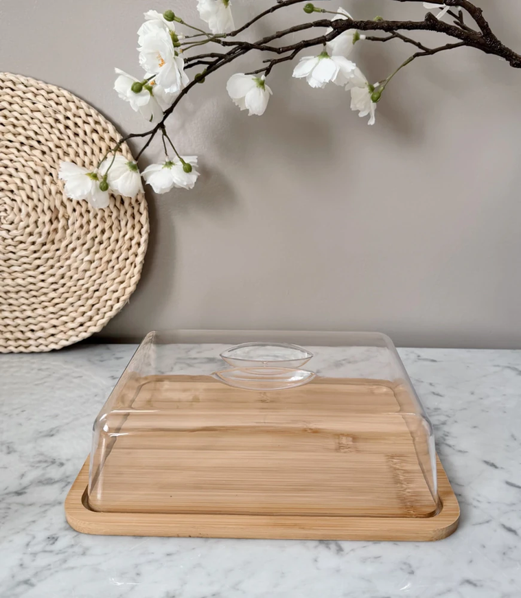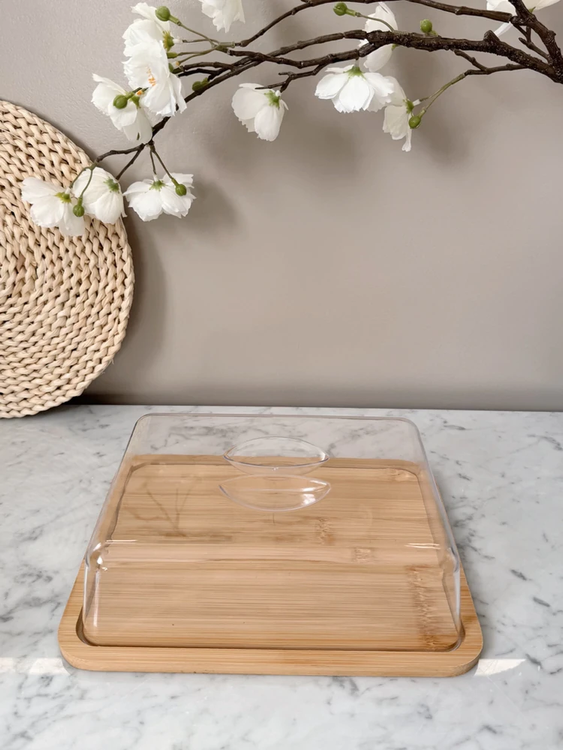 Campana rectangular de acrilico con base de bambu