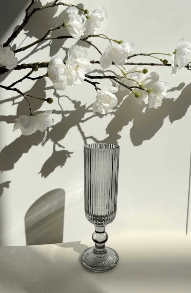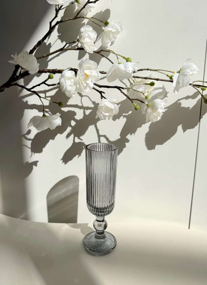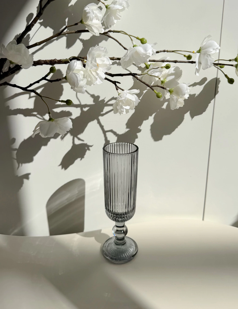 Set x6 copas champagne de vidrio gris con rayas verticales 156ml