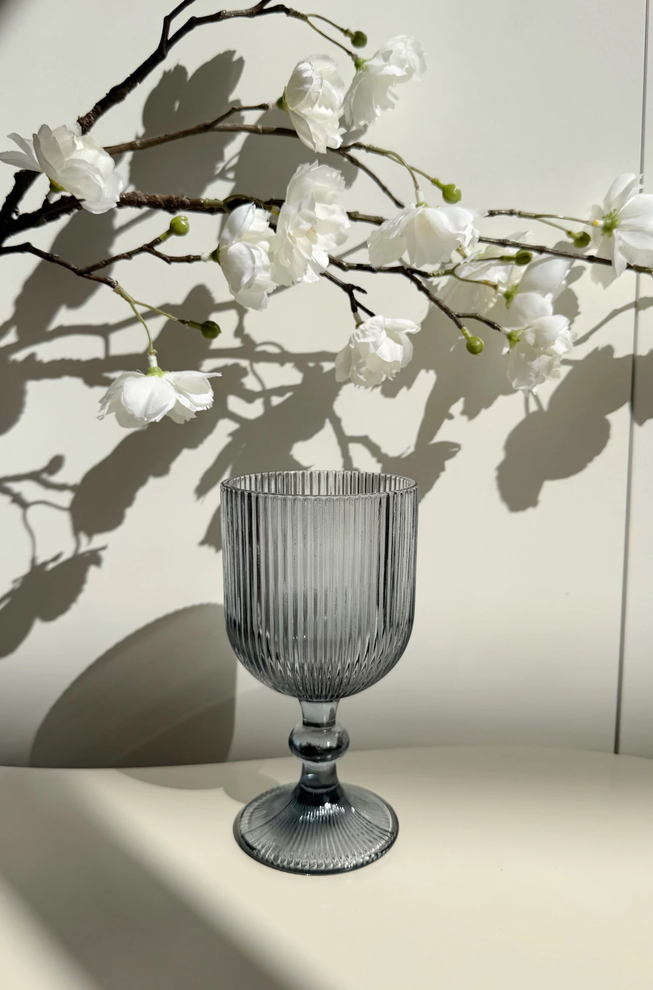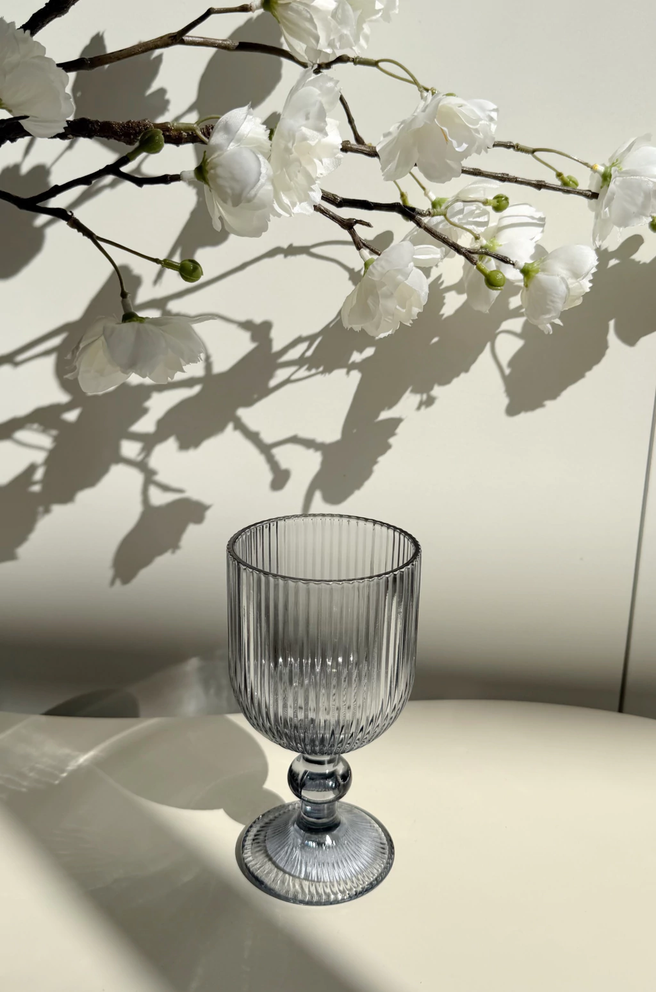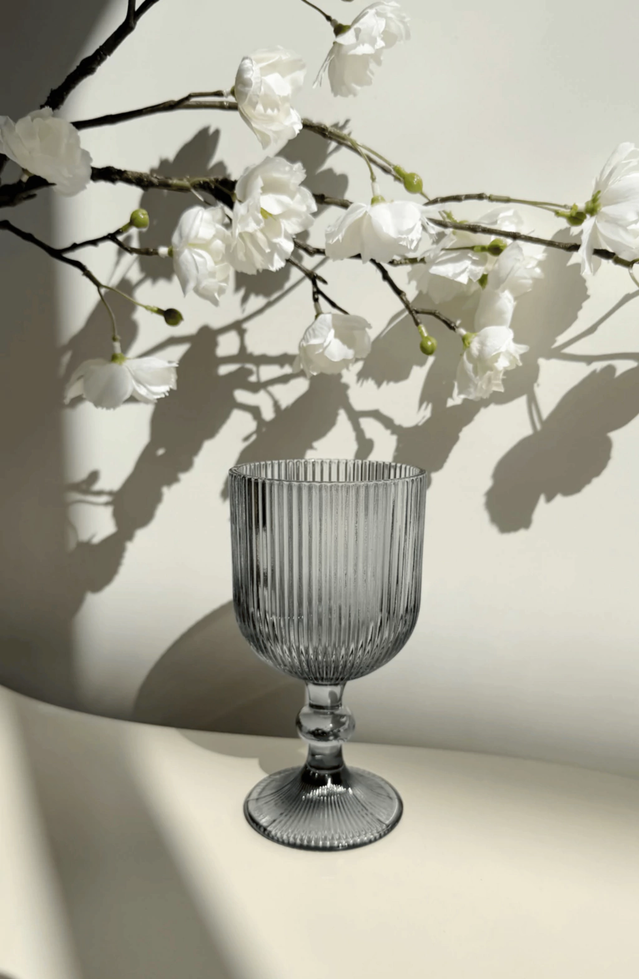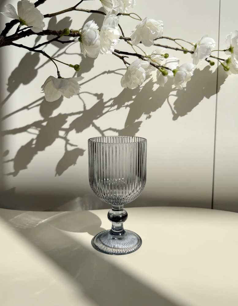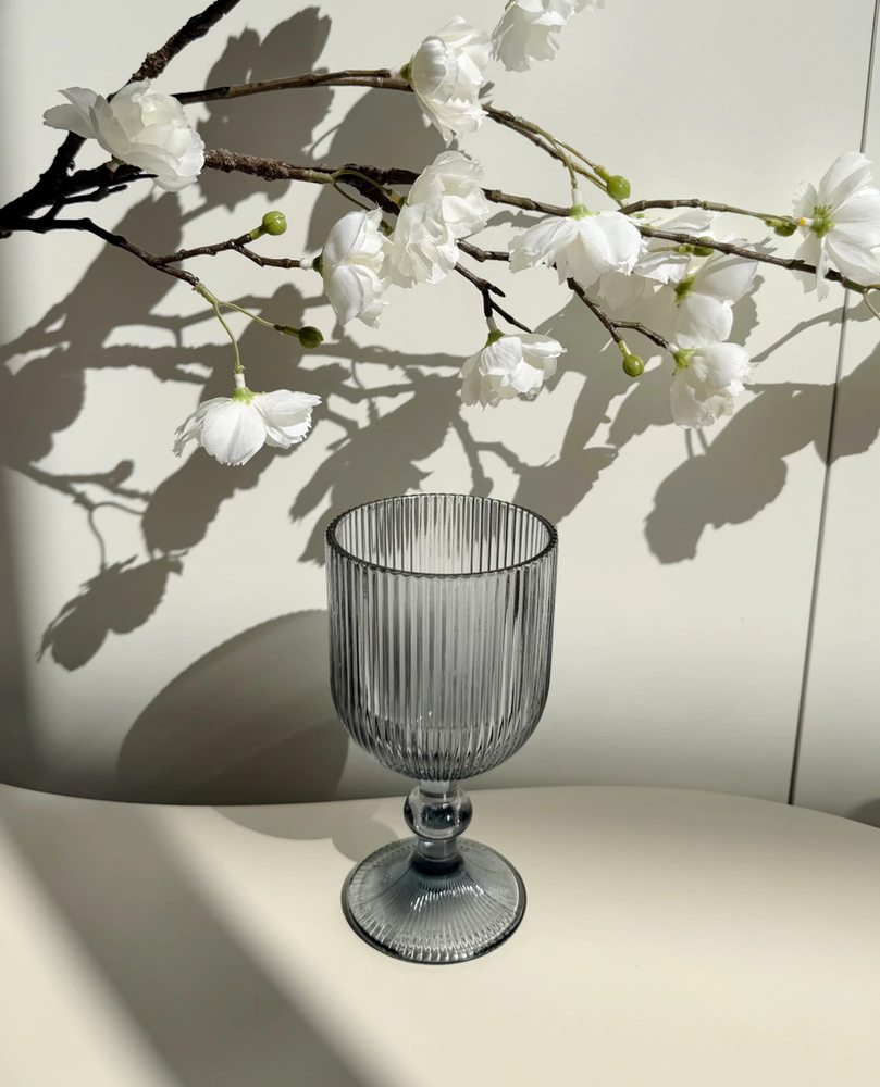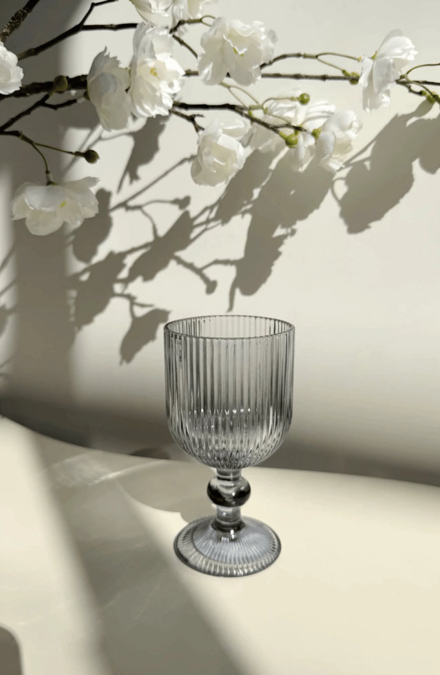 Set x6 copas de vidrio gris con rayas verticales