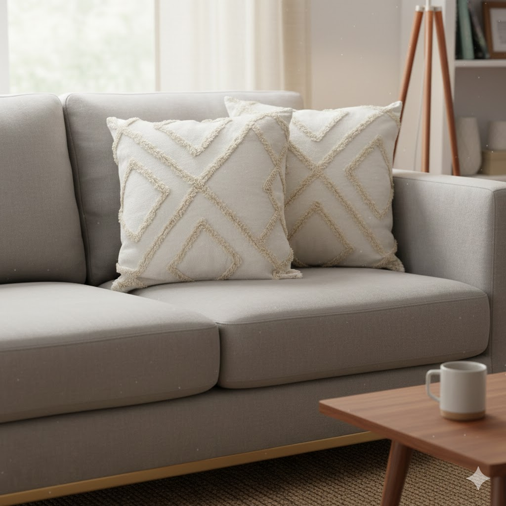 Funda de almohadón 45 x 45 cm rombos 3D algodón natural