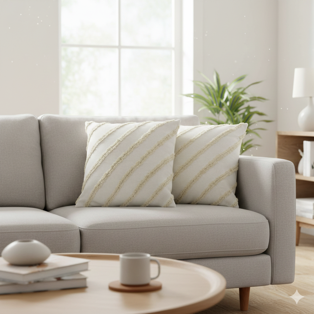Funda de almohadón 45 x 45 cm algodón natural lineas 3D